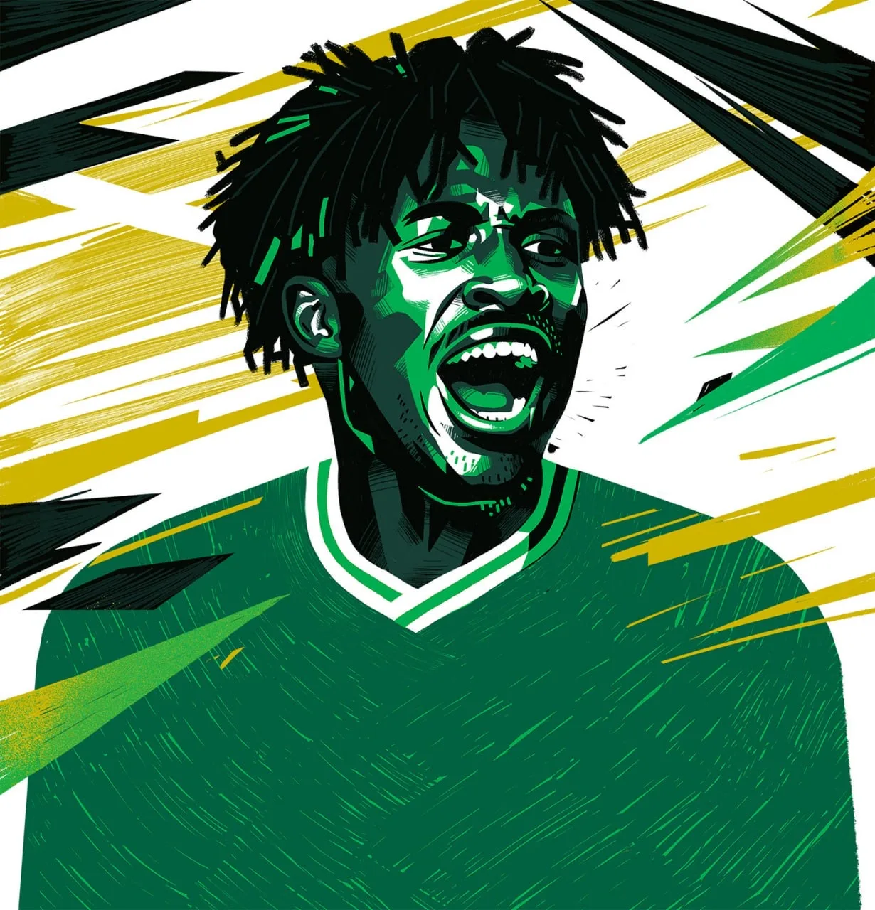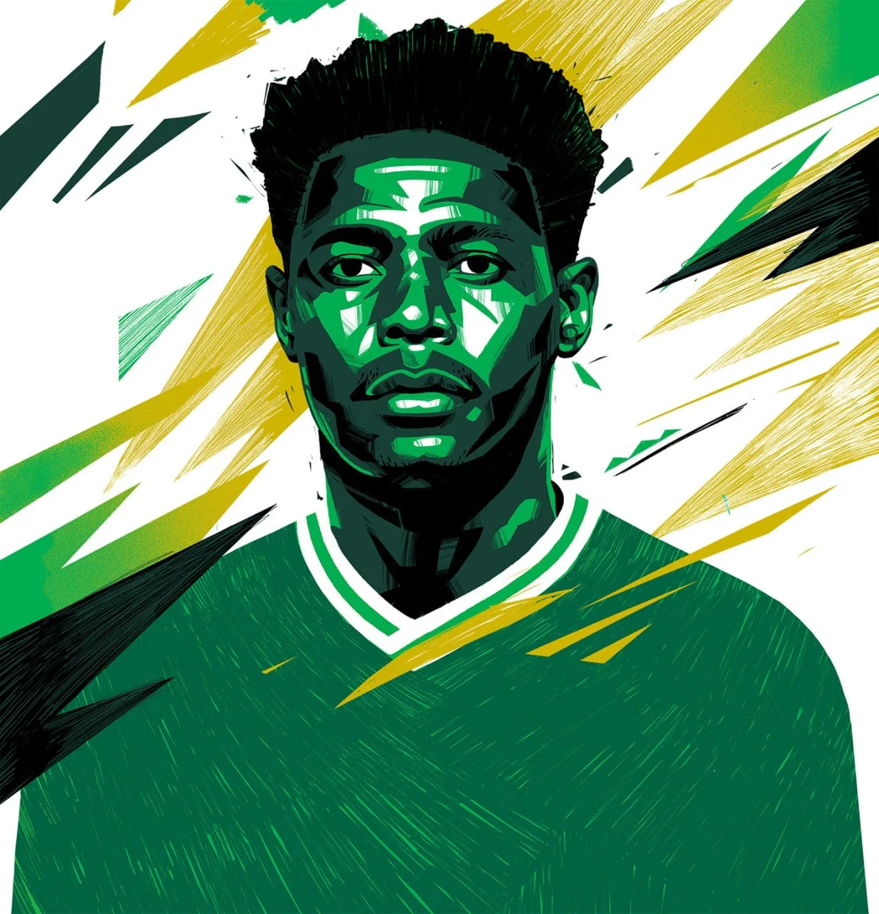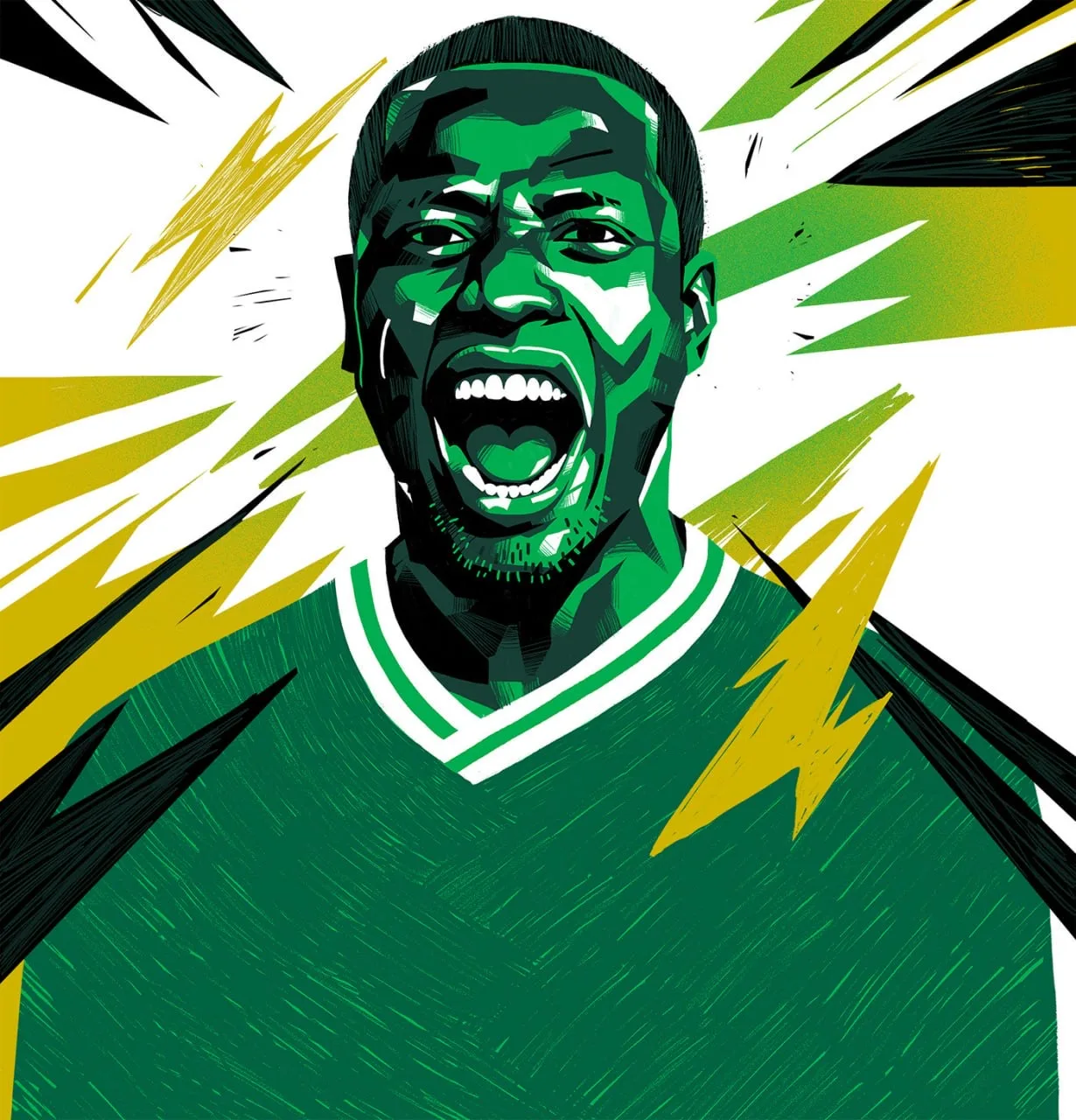 Иллюстрированные портреты для футбольного клуба «Amazulu». Атмосфера была нарисована в стиле плаката, чтобы подчеркнуть богатую историю искусства, вдохновленного фанатами. Это не мой обычный стиль, но я потратил огромное время, работая над этими портретами.