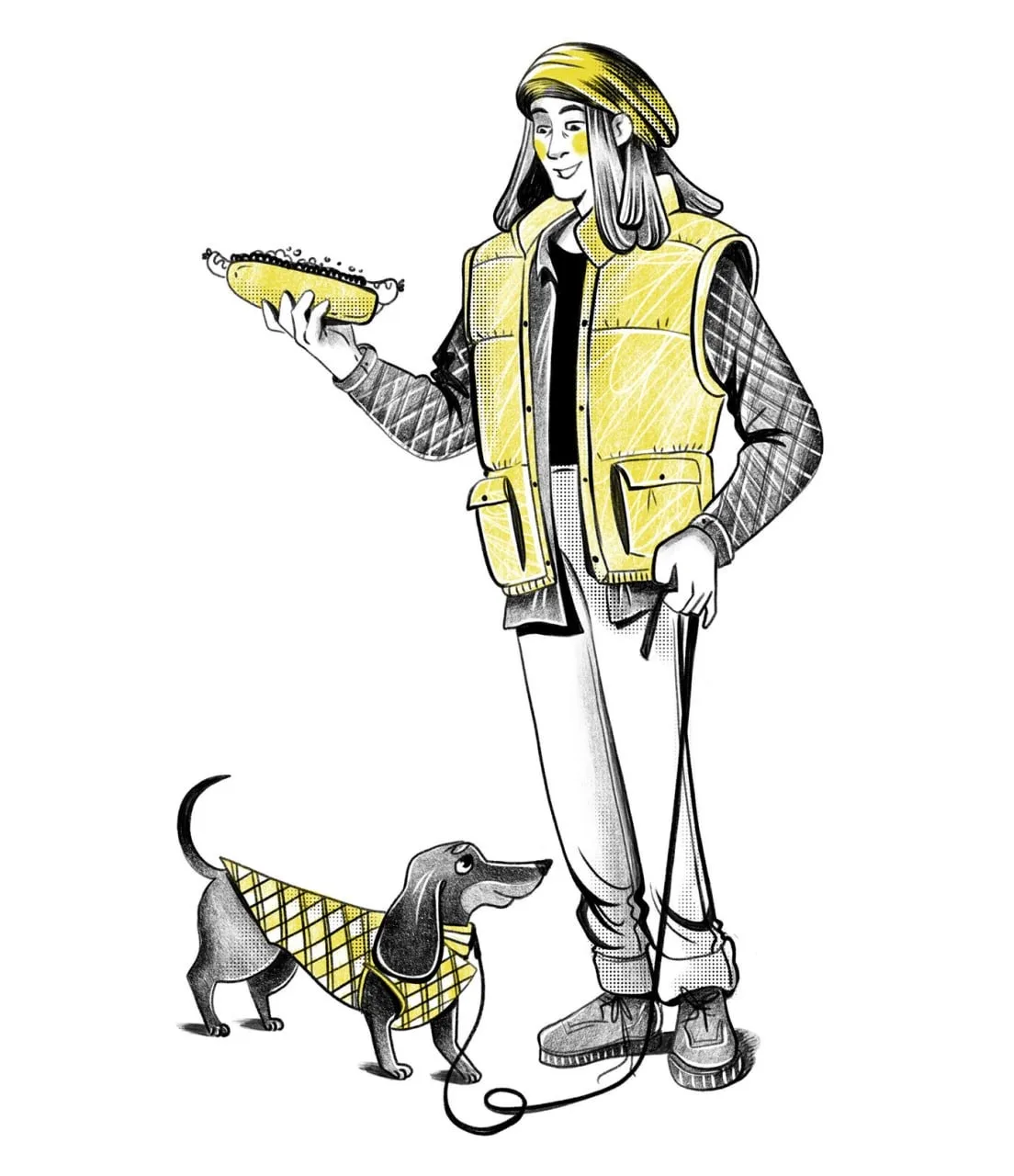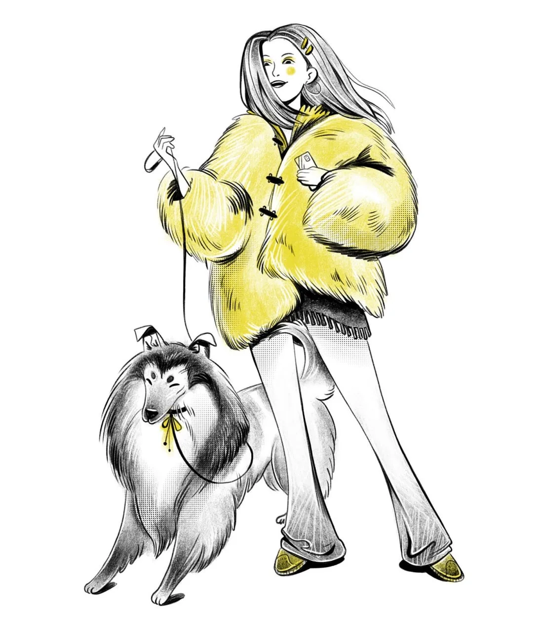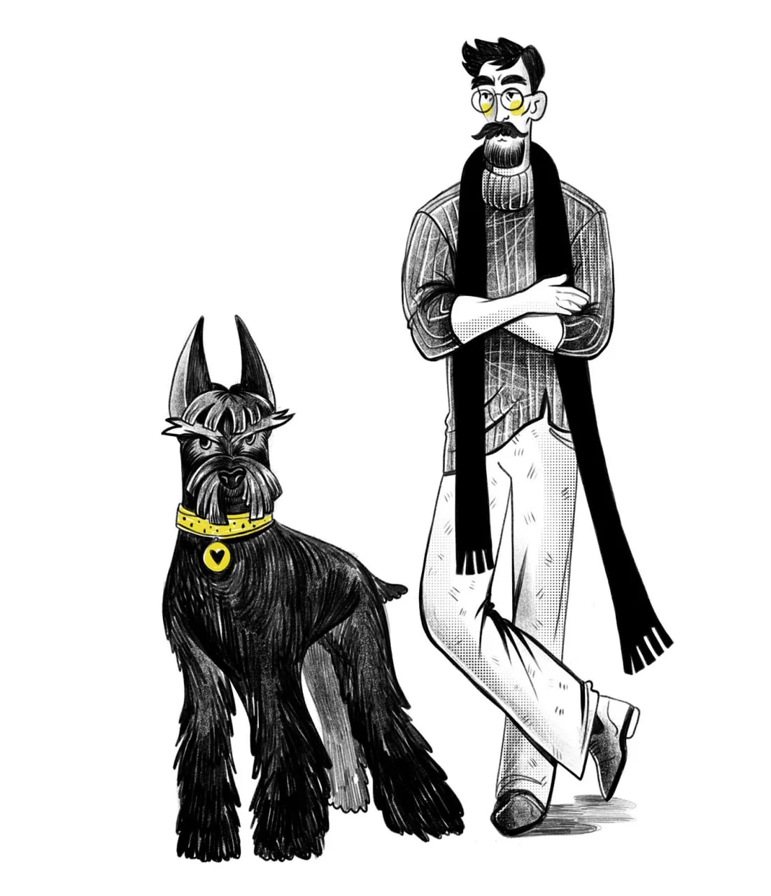 Меня вдохновила сцена из фильма «101 далматинец», где люди выгуливают своих собак.