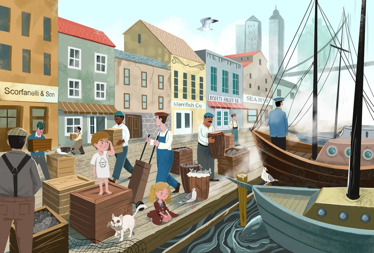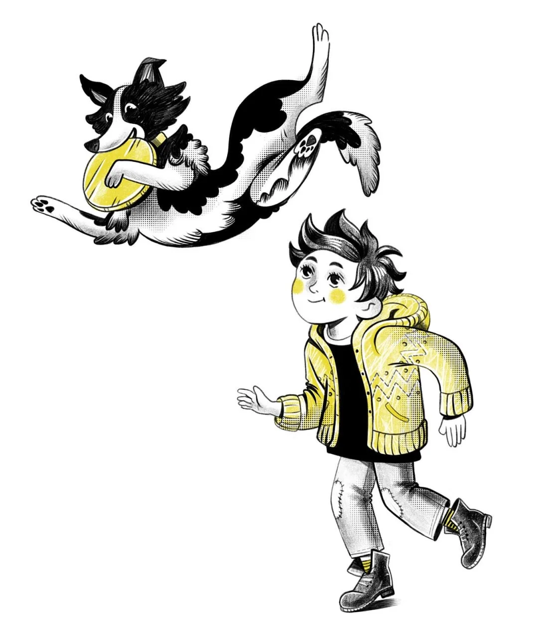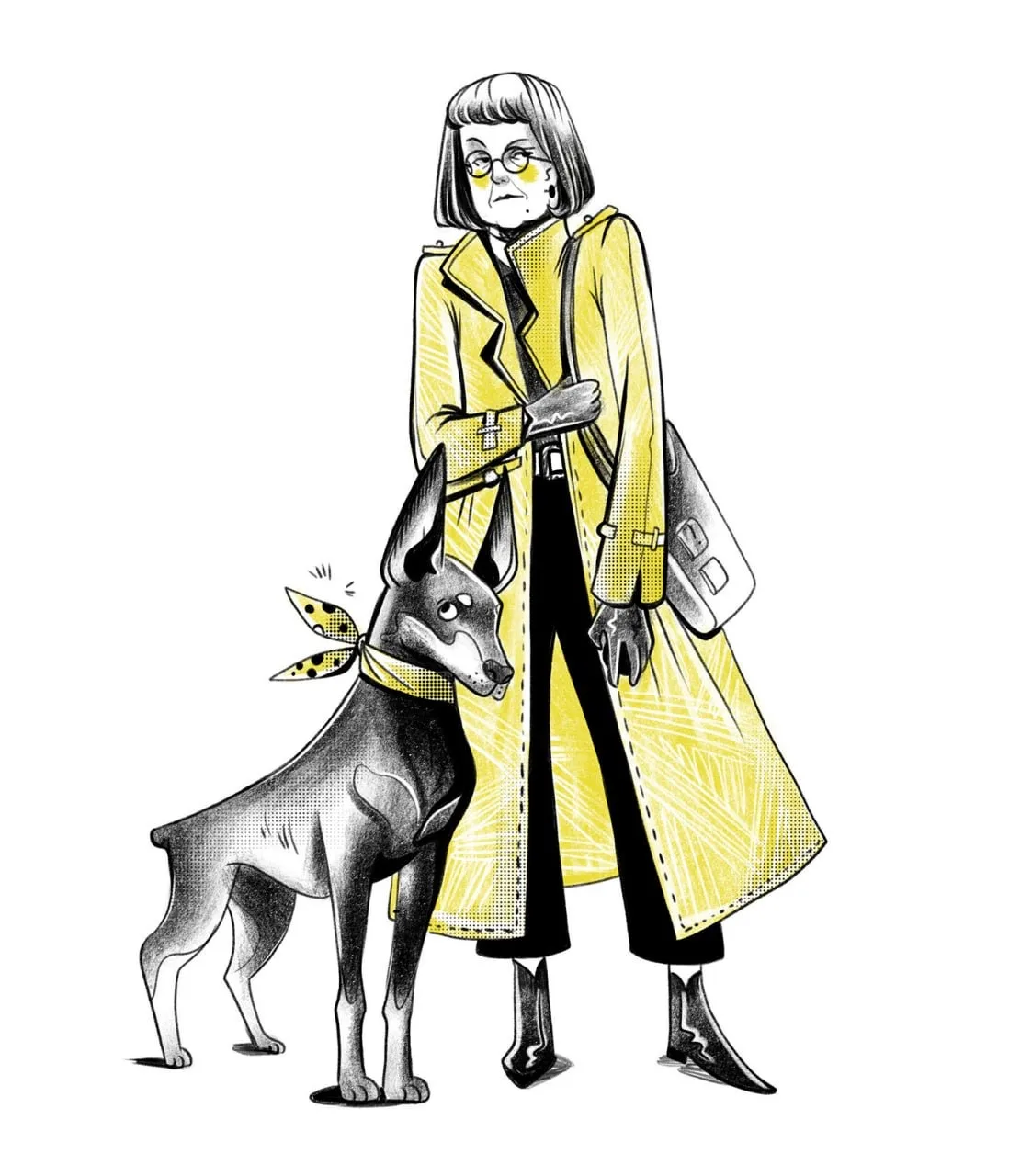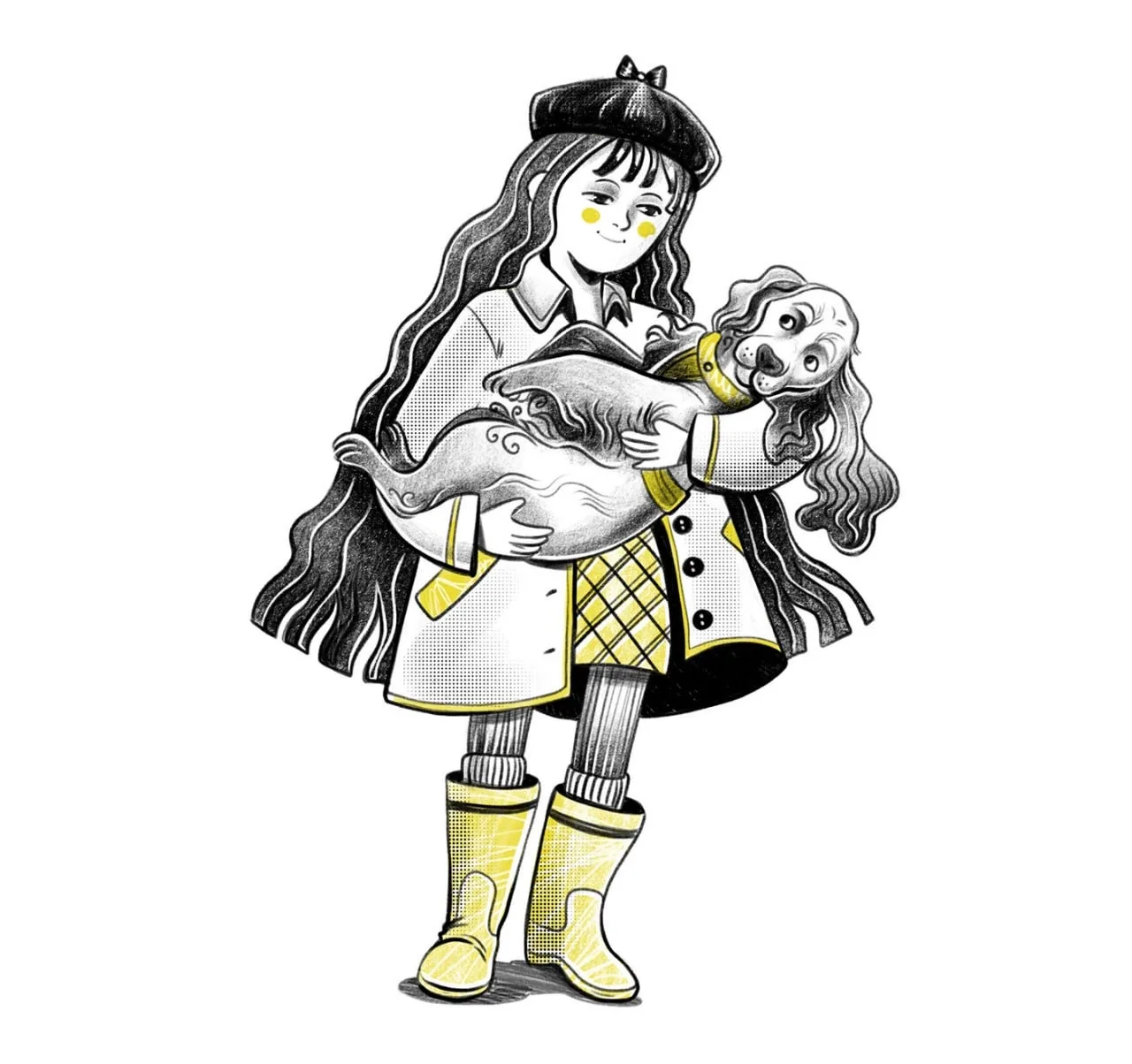Меня вдохновила сцена из фильма «101 далматинец», где люди выгуливают своих собак.