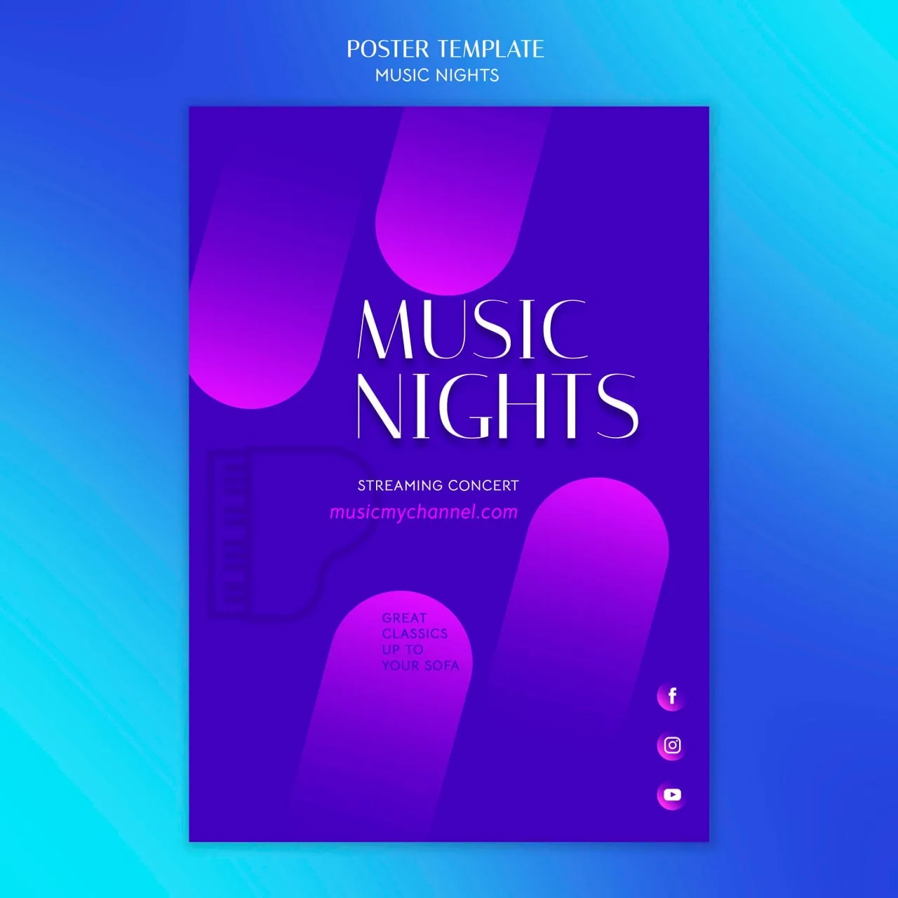 Шаблон градиентного плаката для фестиваля музыкальных ночей