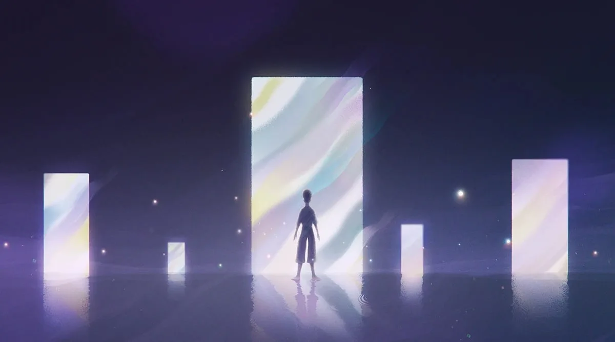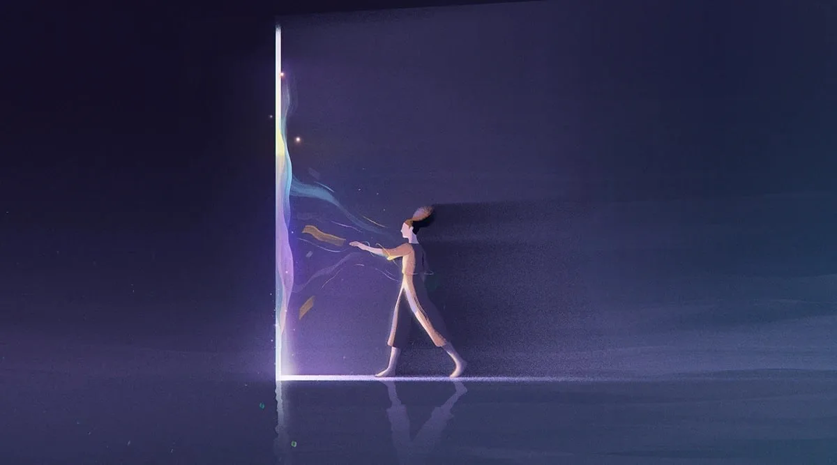 Космический плакат «Новые пути» с использованием карт градиента и стилей свечения