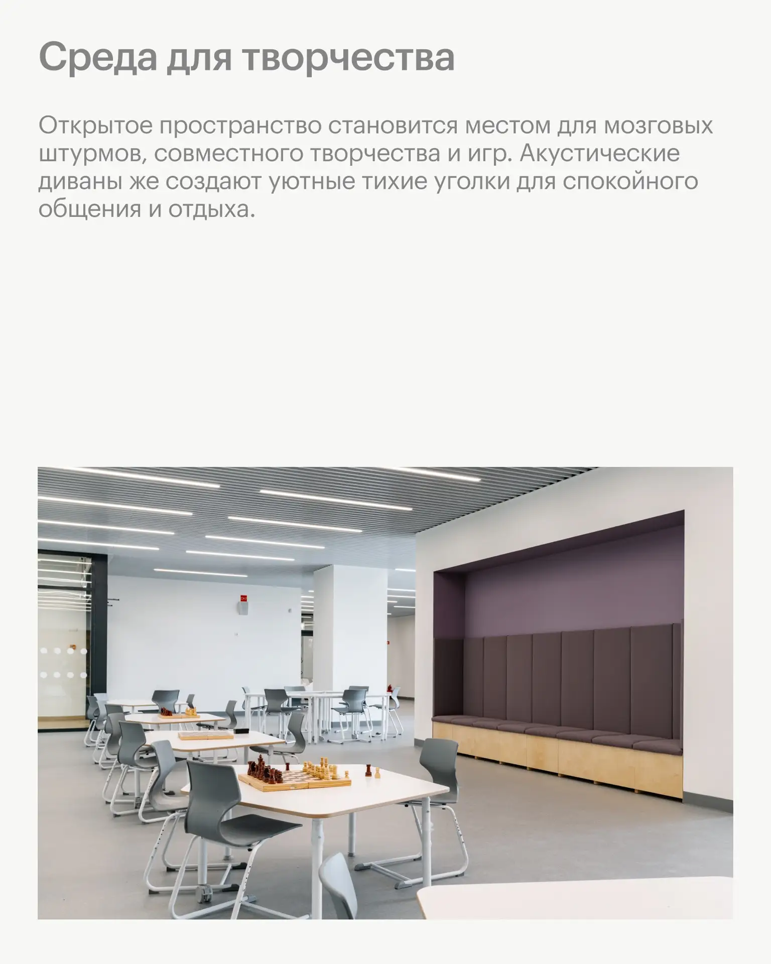 Команда архитекторов и инженеров тщательно продумывает освещение: подбирает яркость и оттенки света так, чтобы глазам было комфортно, а пространство оставалось удобным.
