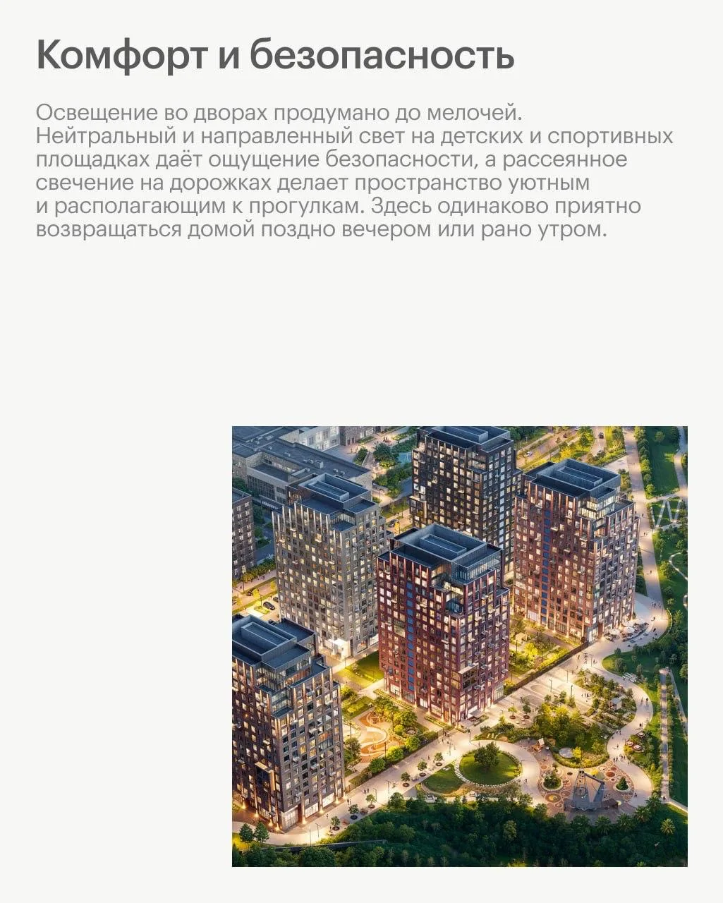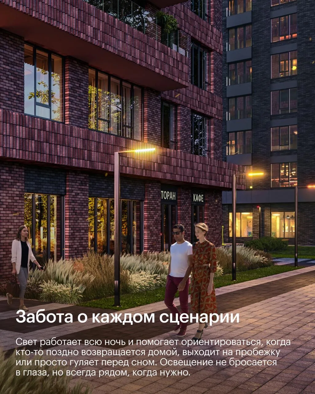 ⬆️На карточках показали, из чего складывается атмосфера вечернего двора: от температуры света до узнаваемых боллардов и ритмично расположенных светильников. А выбрать и купить квартиру можно на pik.ru