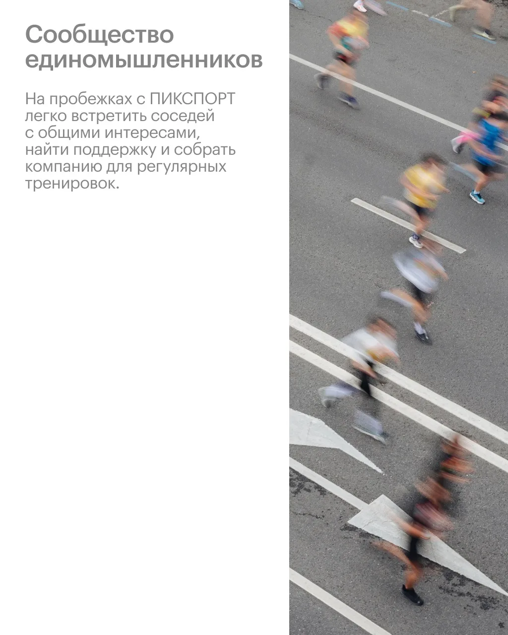 Вместе с ПИКСПОРТ начинающие и опытные атлеты тренируются, готовятся к полумарафонам и находят друзей среди соседей.