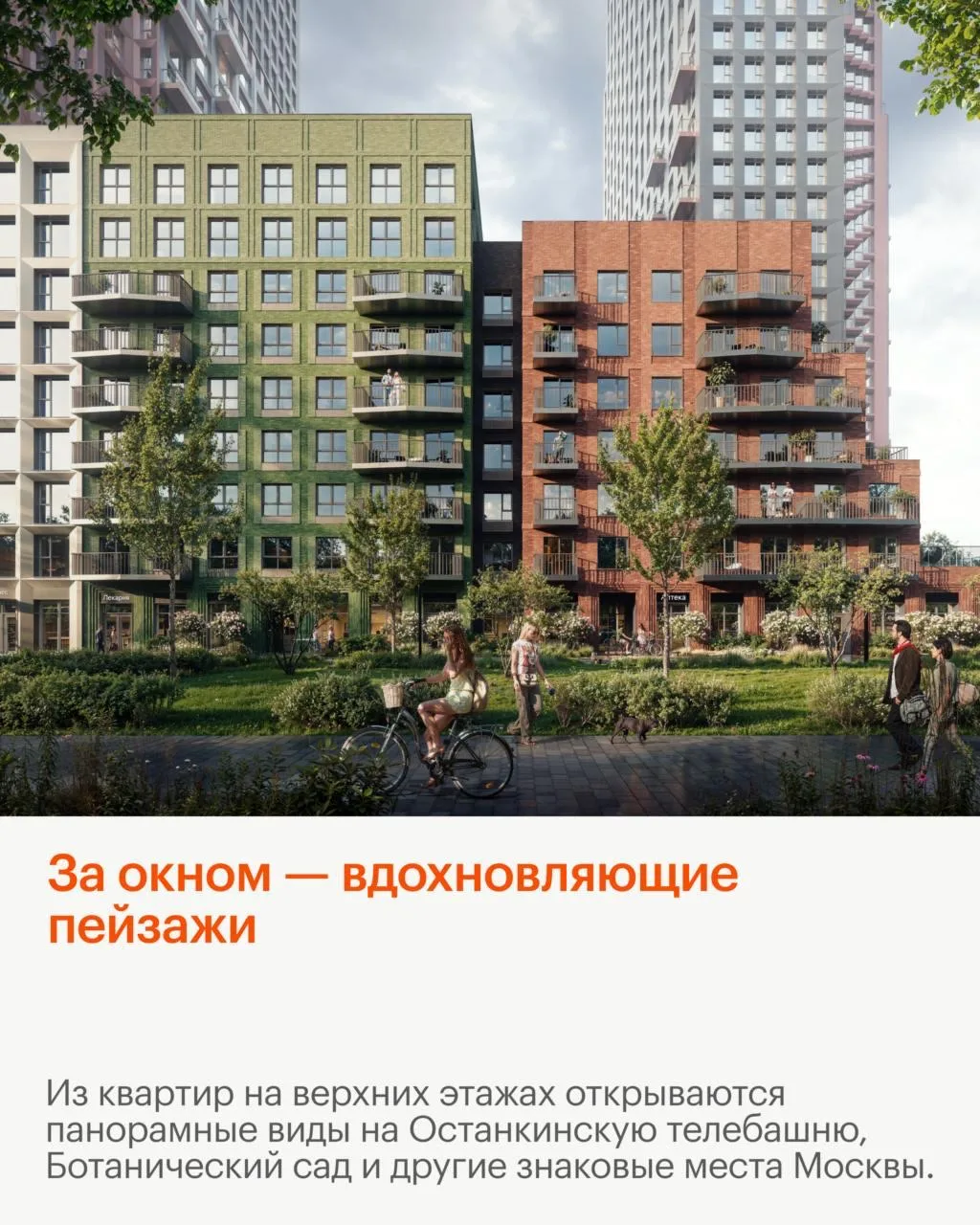 Вид на Останкинскую башню, парковое окружение и умные планировки в квартале «Серии плюс»