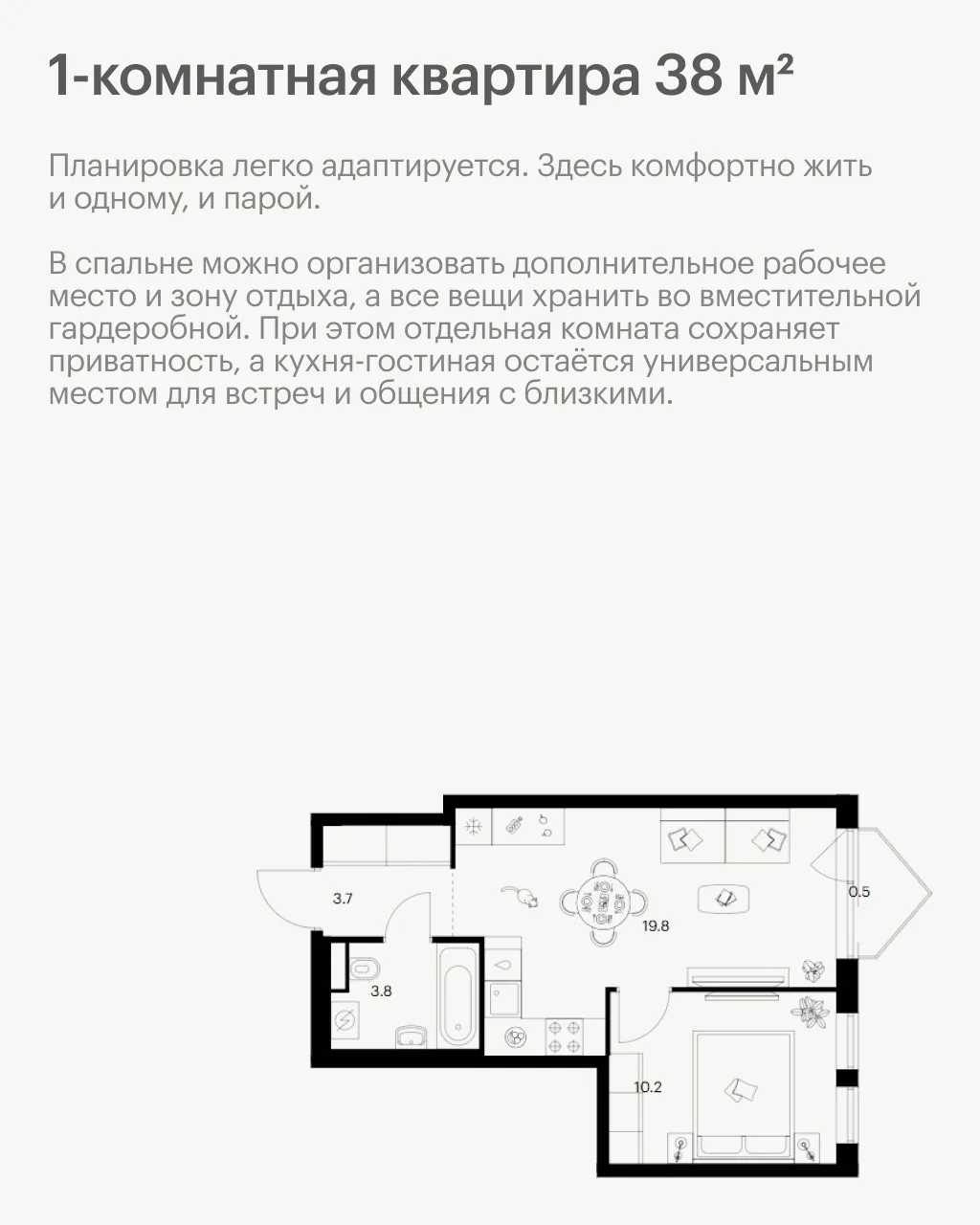 На карточках — особенности 1-комнатной квартиры 38 м² и практичные советы, которые помогают использовать каждый метр пространства с пользой.