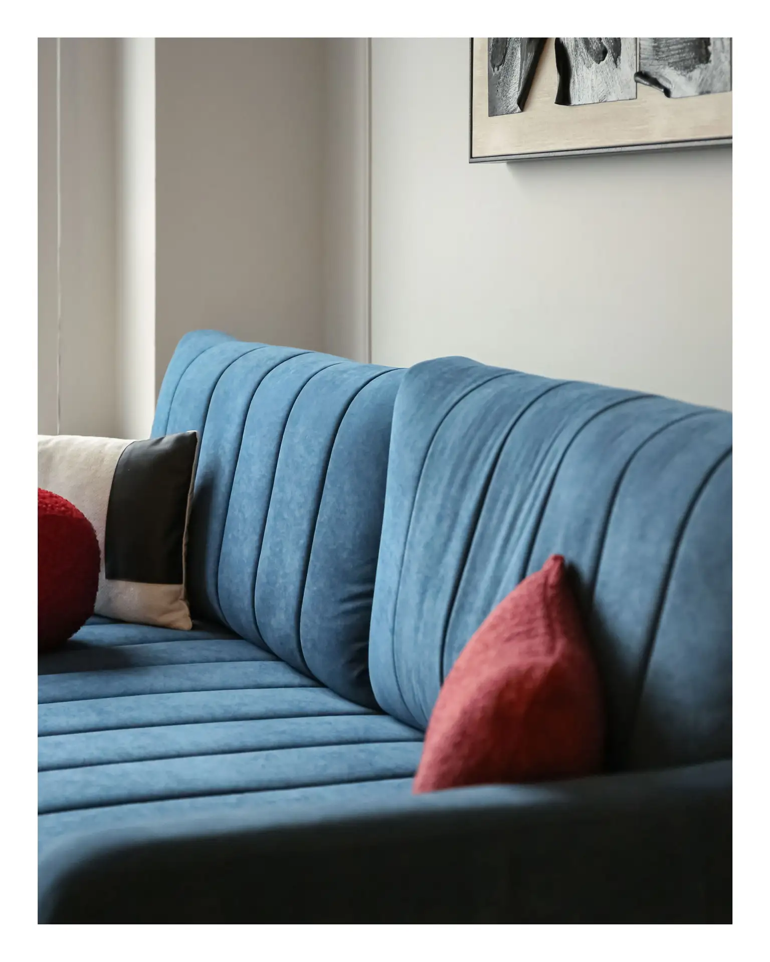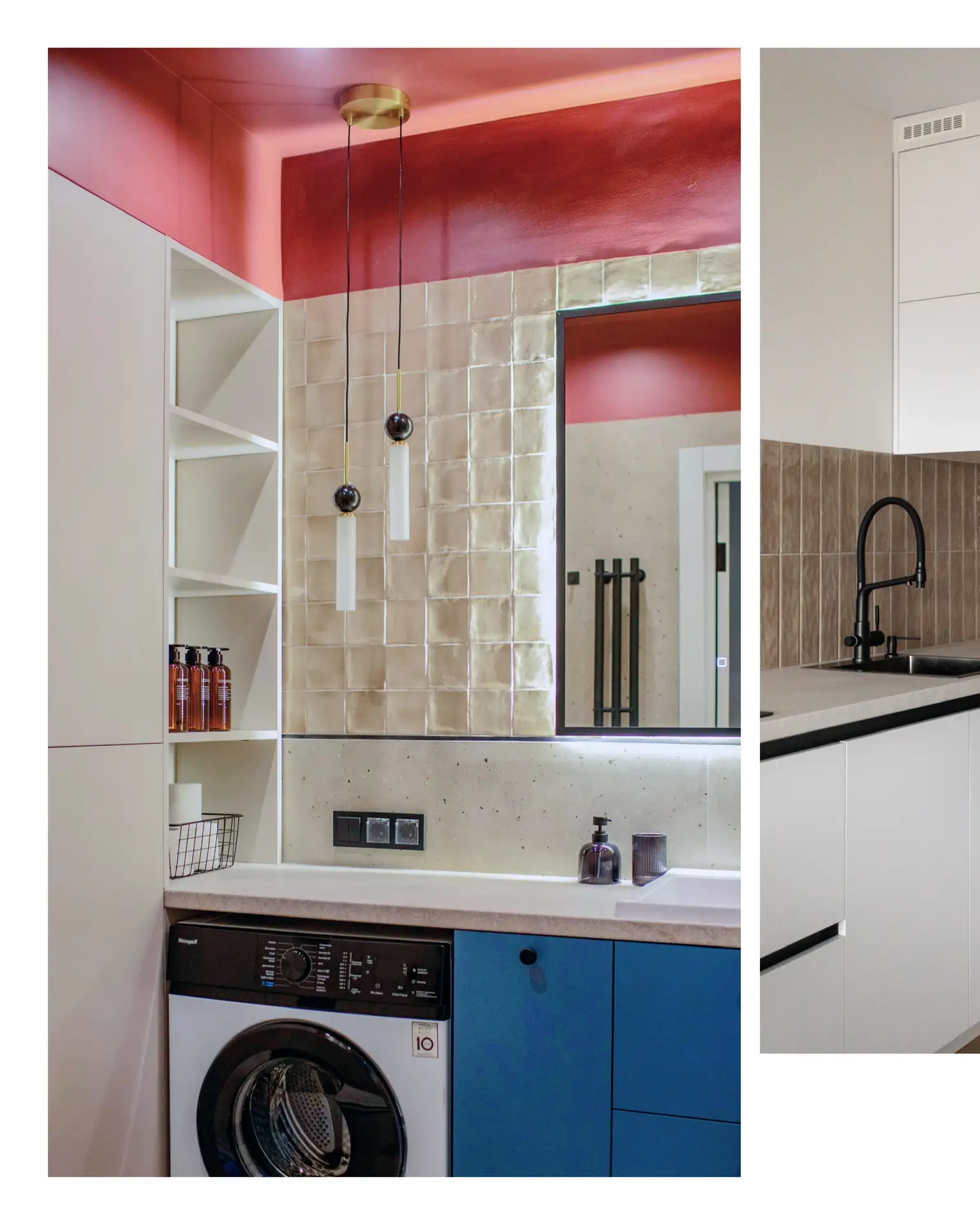 В самобытном интерьере Лена отразила собственный характер через такие элементы, как настенная скульптура и бра в золотом цвете.