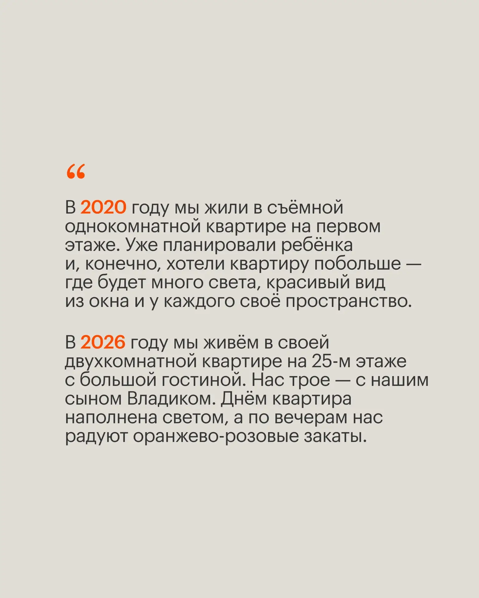 Жители кварталов ПИК тоже поделились, каким для них стал уходящий 2025 год. Из этих воспоминаний сложились тёплые истории — о доме и семье, путешествиях, первых шагах, радостях и тихих повседневных моментах, из которых и состоит счастье.