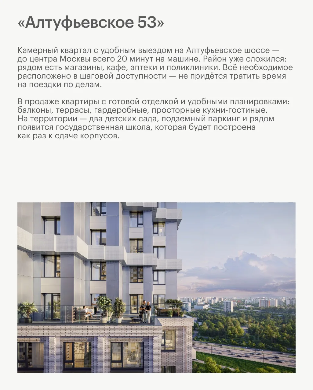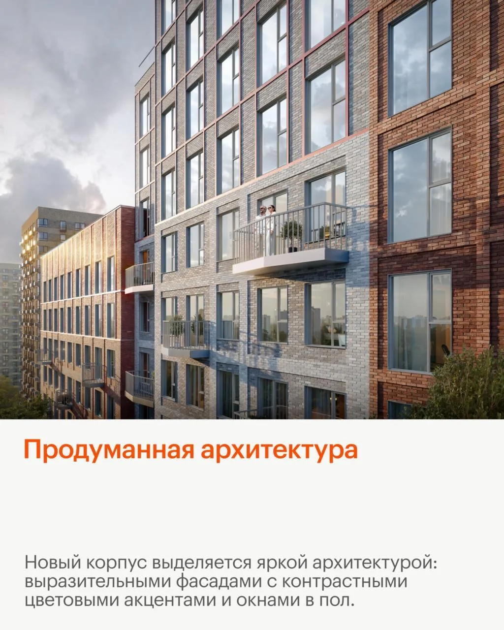 Масштабный проект в одном из самых зелёных районов Москвы. Новый корпус 82 относится к «Серии плюс» — проектам с индивидуальной архитектурой и продуманными функциональными решениями. Природная палитра, ступенчатые фасады и переменная этажность погружают в атмосферу южной архитектуры.