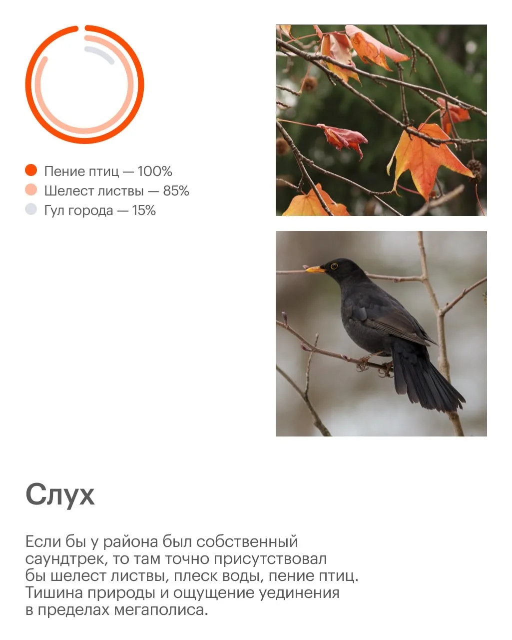 ⬆️На карточках представили район Строгино через пять чувств, чтобы показать, как природа влияет на настроение и ощущение жизни.