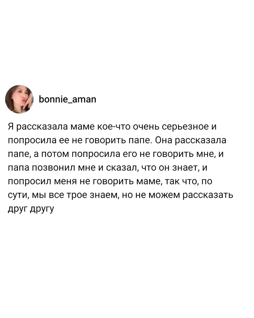 — Она раньше нормальная была, а в прошлом году развелась с мужем и совсем кукухой поехала! Ну или до развода, я хз.