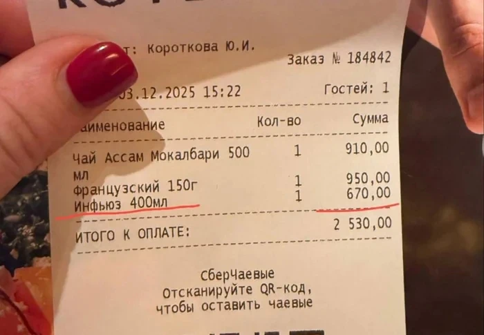 Девушка попросила официанта в московском ресторане долить кипятка в свой чай и его включили в счёт