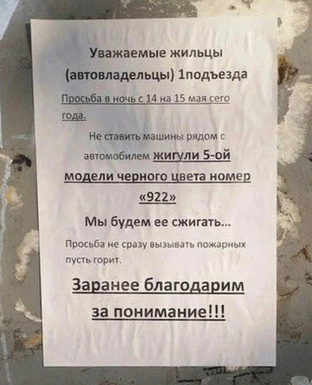 После нескольких дней такого форменного издевательства над молодым не выспавшимся организмом, мой товарищ отправился в ближайшее фотоателье, и НА СВОИ ДЕНЬГИ распечатал в ближайшем к дому фотосалоне лист формата А4 с надписью, которая гласила следующее: