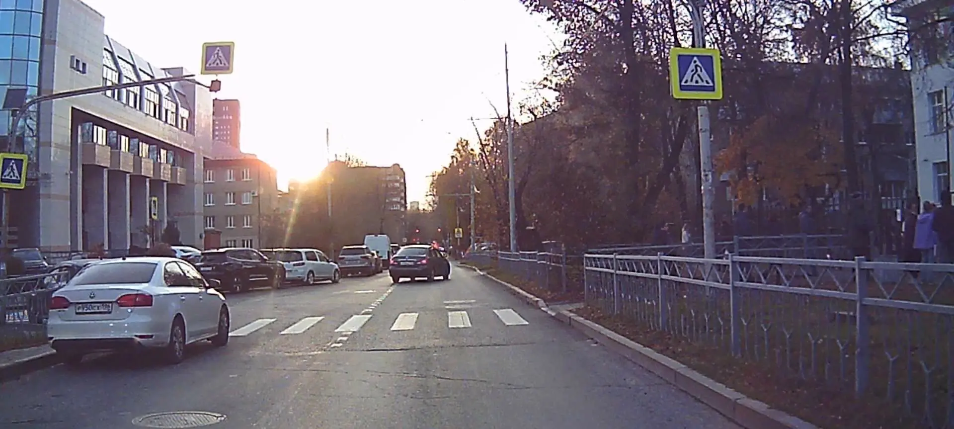 Наблюдаем очередного хама, который припарковался перед пешеходным переходом, полностью перекрыв предварительный обзор как водителю так и пешеходу.