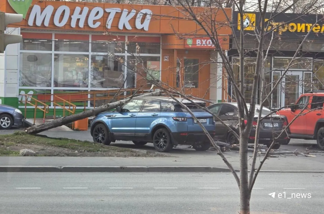 На перекрестке Мира — Библиотечная дерево упало на дорогой новый внедорожник.