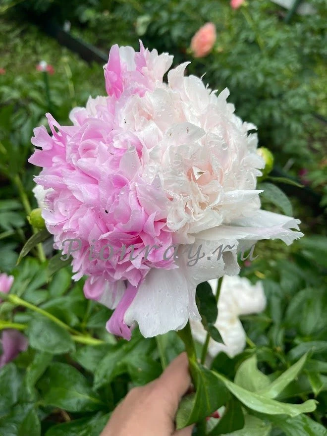 Настоящая королева позднего пионового сада - высокая, статная, букетного цветения, с пышными не бликующими розово-белыми цветами - она всегда будет в центре внимания.