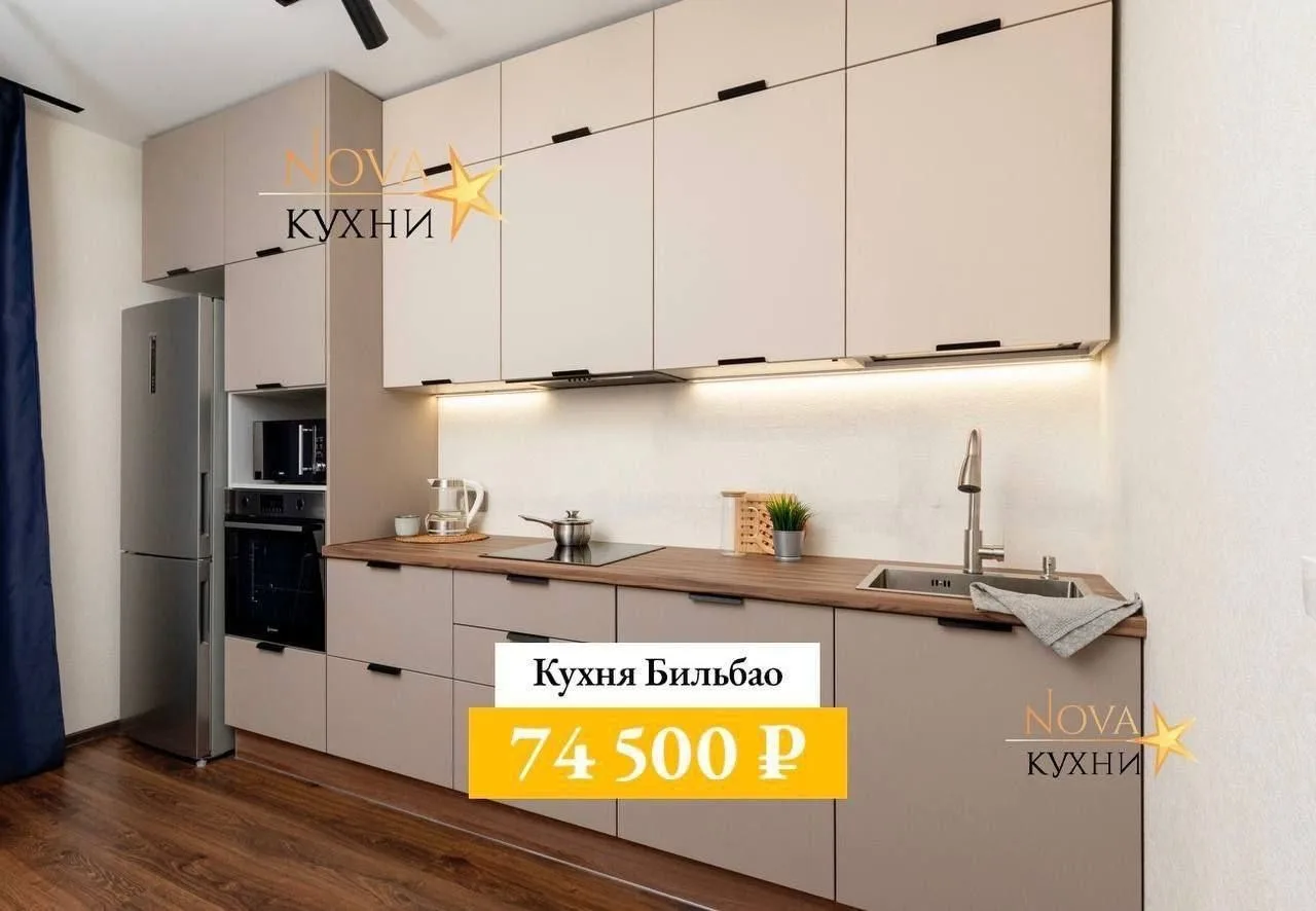 В «Nova Кухни» цены от 60 000 ₽ за весь гарнитур — своё производство, без посредников