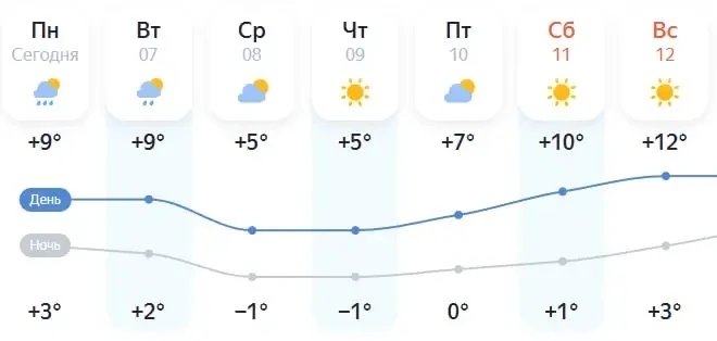 Ночью температура воздуха будет около нуля, днём — от +3°C до +11°C.