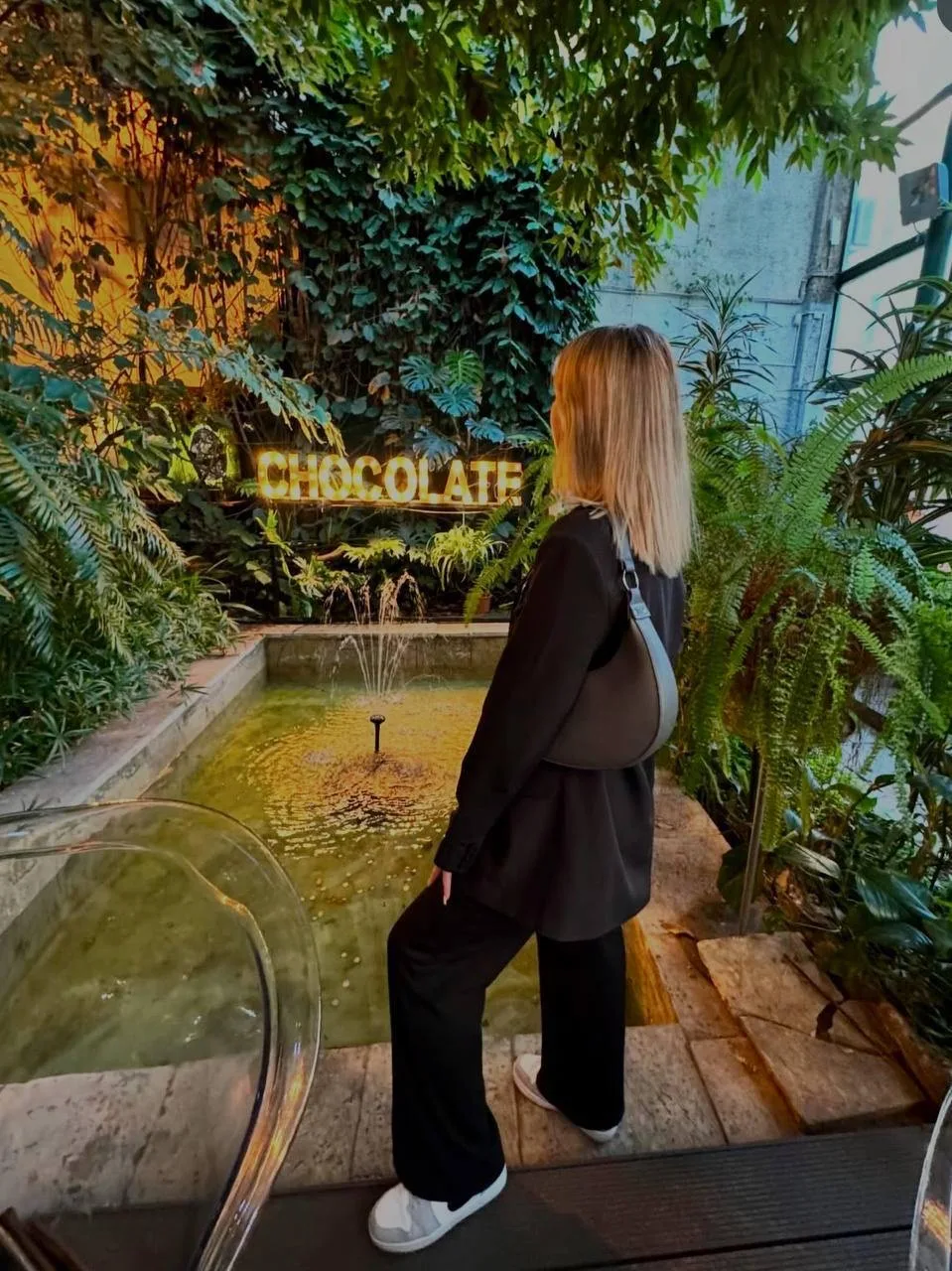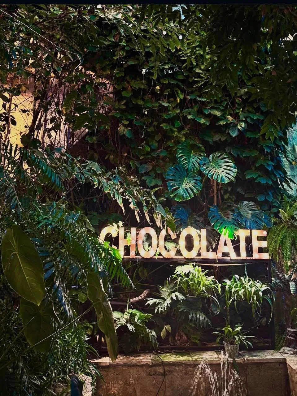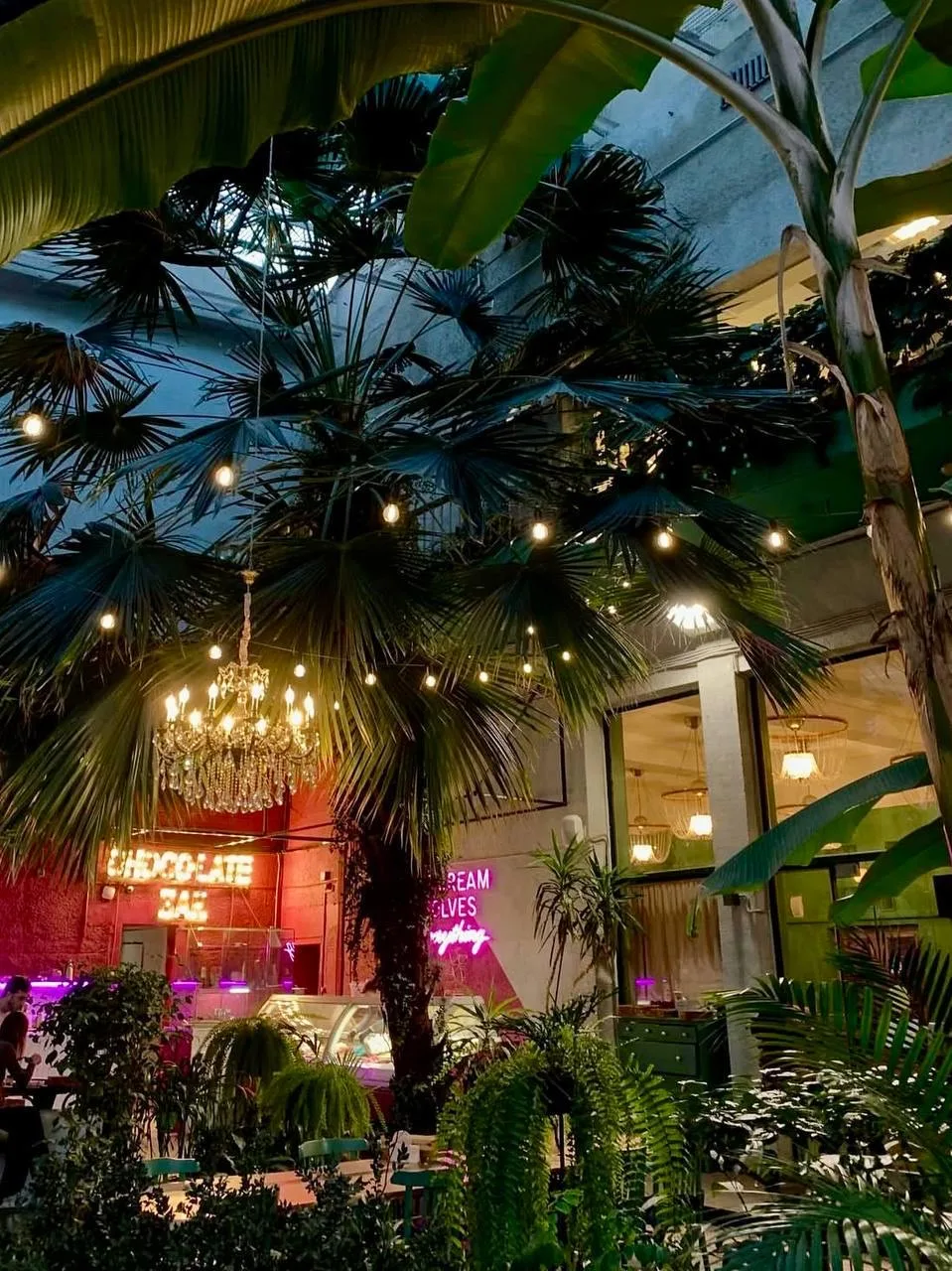 ➡️ Кафе The Choco напоминает уютный зелёный оазис: интерьер украшен декоративными деревьями, пальмами, фонтаном и элегантными люстрами. Здесь легко почувствовать себя в вечнозелёном саду, даже если за окном зима.
