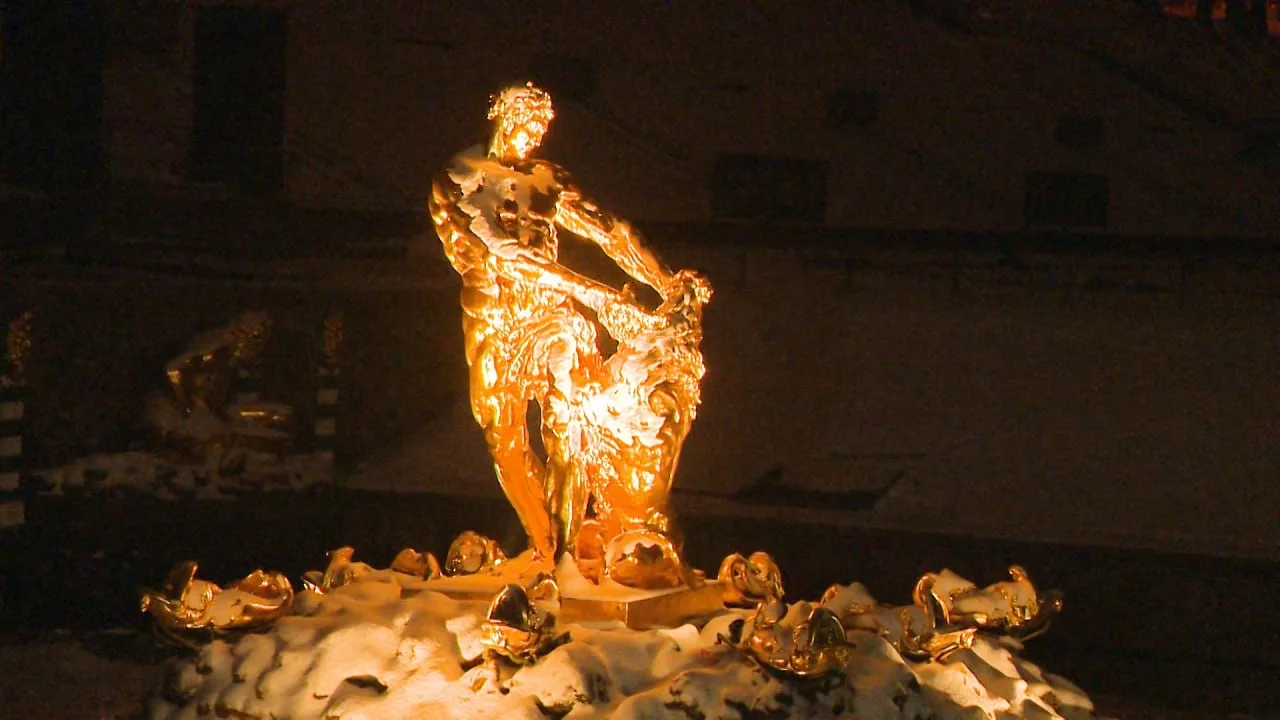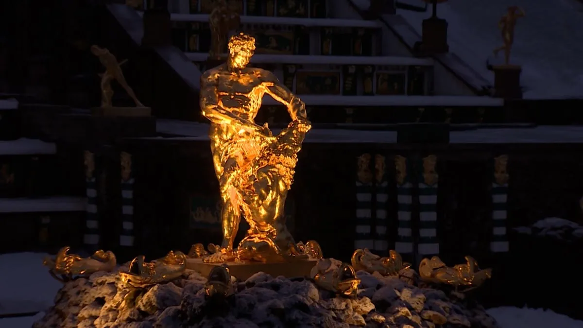 С наступлением темноты центральная фигура Нижнего парка — Самсон, разрывающий пасть льва, — оживает благодаря художественной подсветке. Могучий герой выходит из тени, а фонтан раскрывается как символ побед России и важнейший объект культурного наследия.