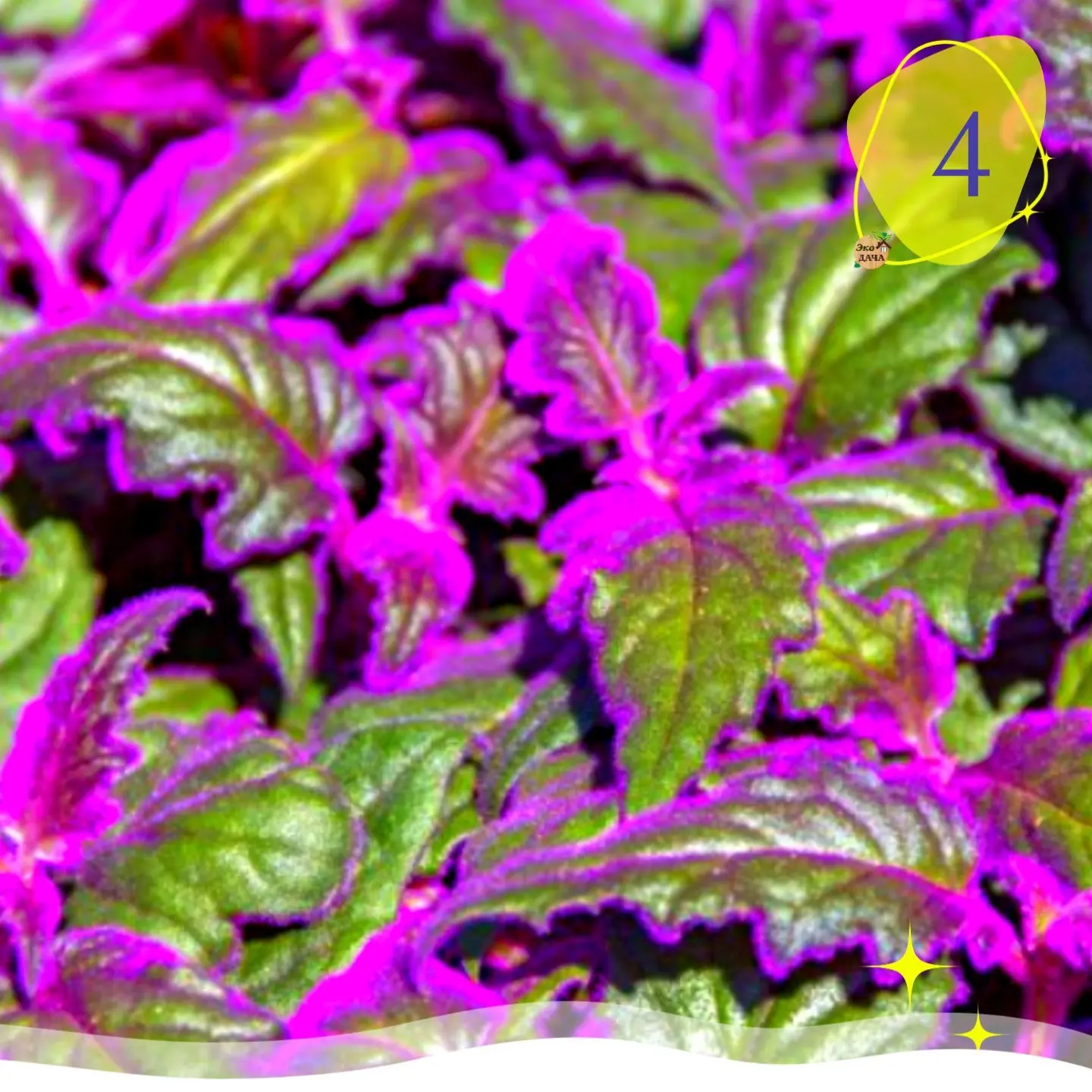4️⃣ Гинура — растение с фиолетовыми листьями. Быстро растёт, но цветки лучше удалять из-за запаха.