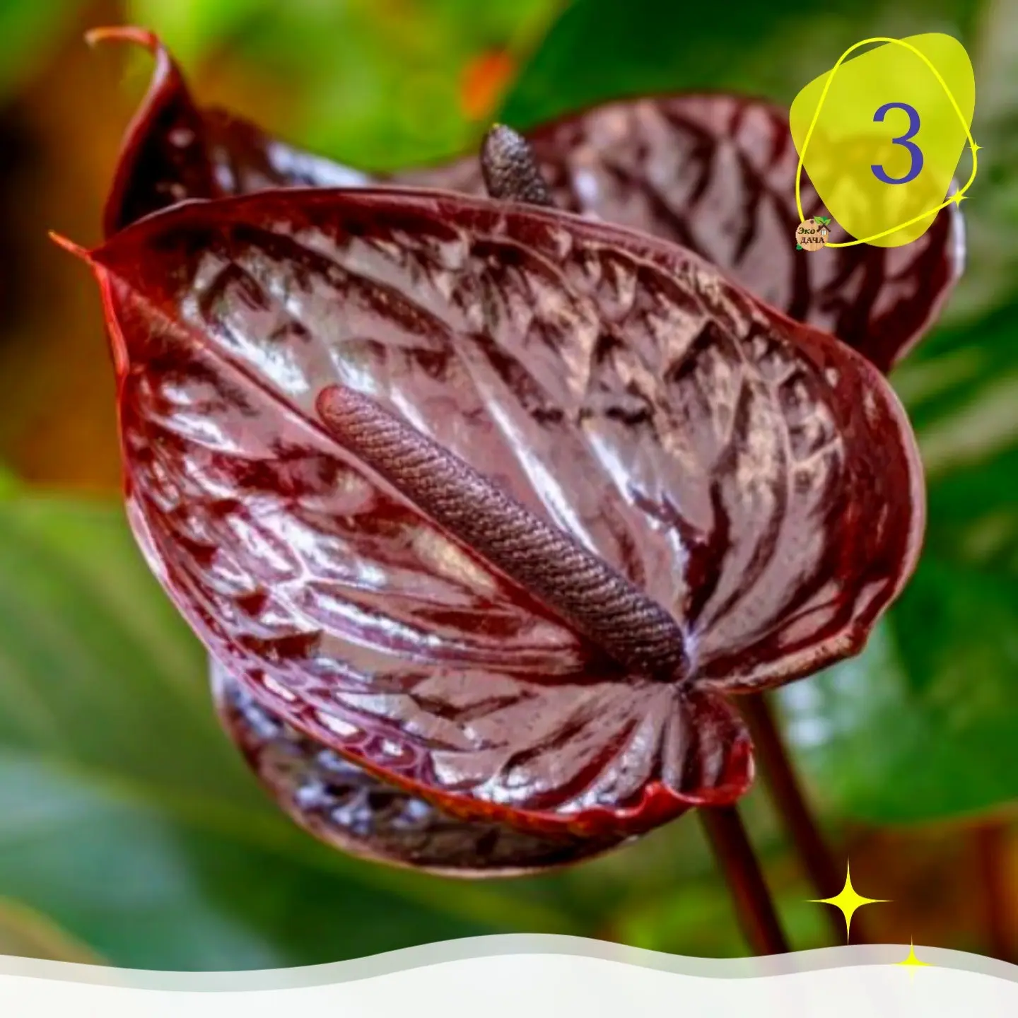 3️⃣ Антуриум — глянцевые листья и яркие прицветники украшают дом круглый год. Любит рассеянный свет и высокую влажность.