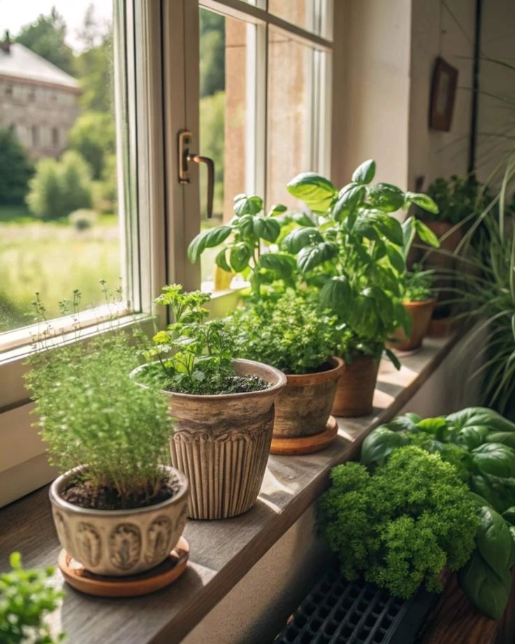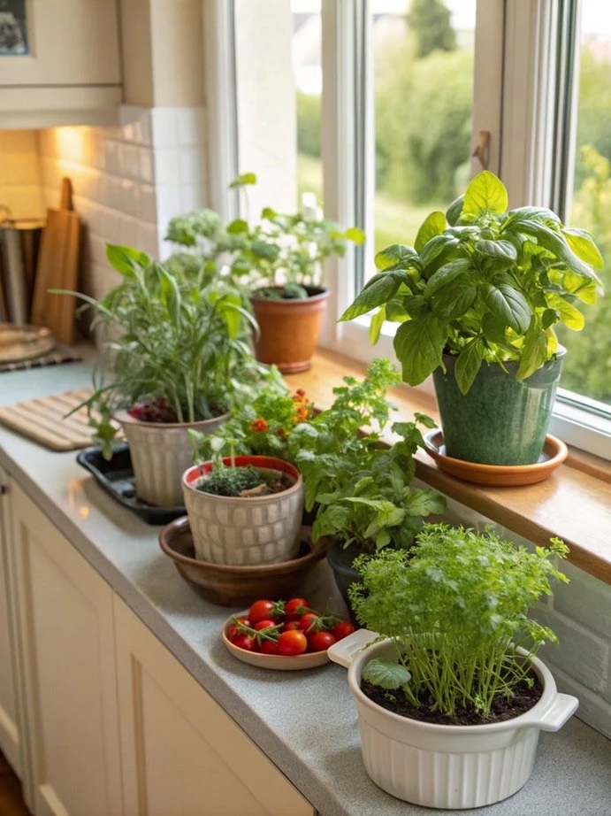 🥬 Среднерослые, такие как капуста и базилик, — в центр.