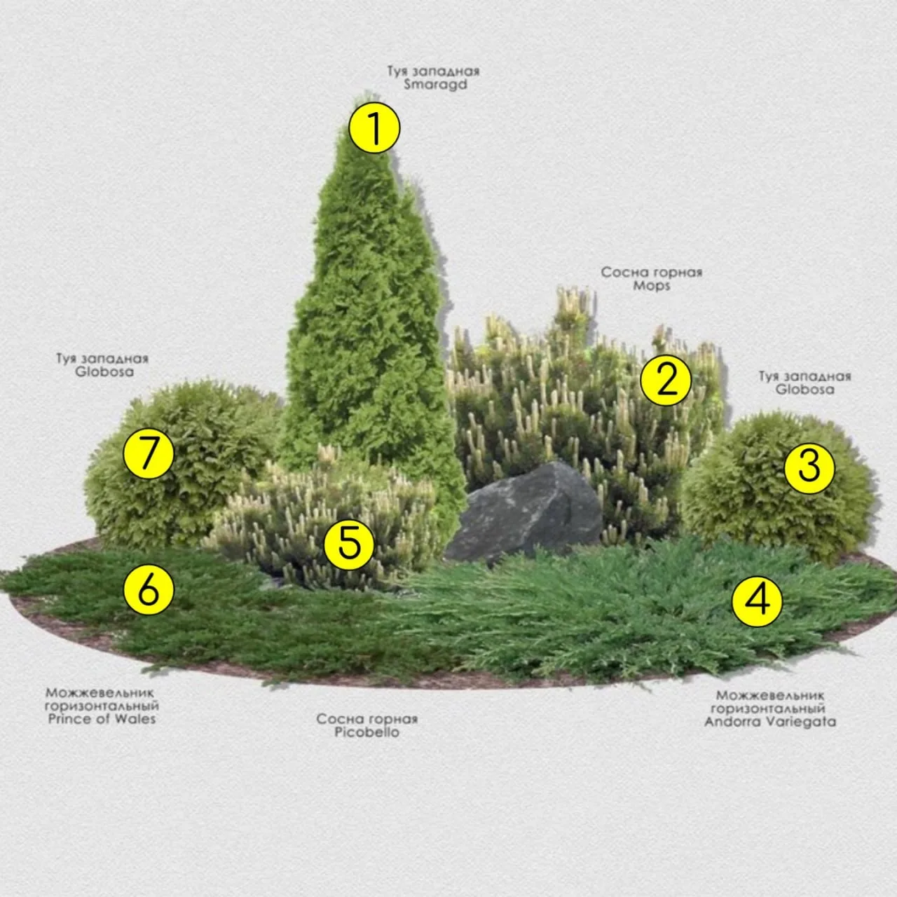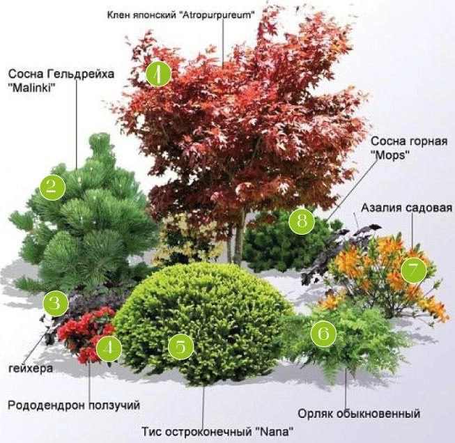 Не высаживайте слишком близко: растения будут бороться за питание и свет. Оптимум – 2–3 лиственных или до 2 хвойных растений на метр.