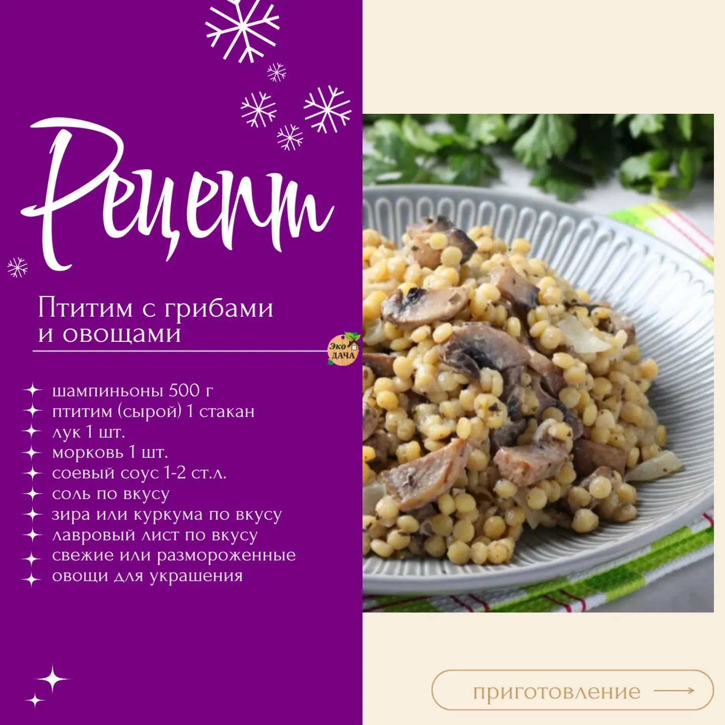 Птитим с грибами и овощами🍄🟫