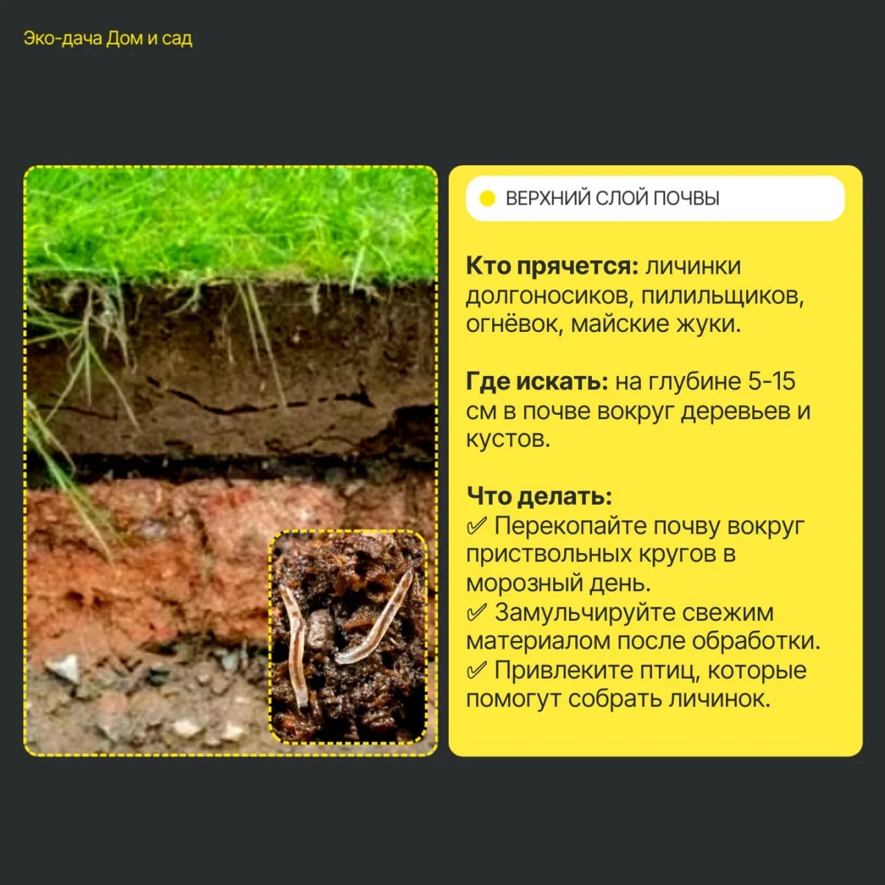 3️⃣ Рыхление почвы – личинки погибнут от мороза.