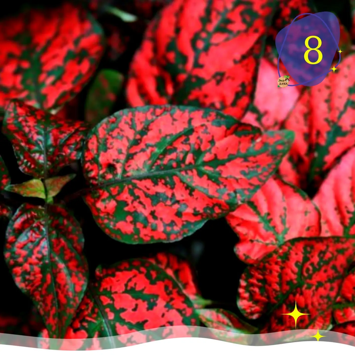 1️⃣ Ирезине — растение с пурпурными листьями и светлыми прожилками. Любит свет, обильный полив и регулярную обрезку.