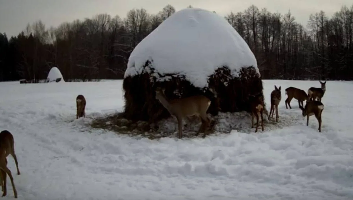 Сюда приходят не только косули, но и зубры с оленями. Эта поддержка поможет животным пережить сложный период, пока солнце не растопит ледяную корку.