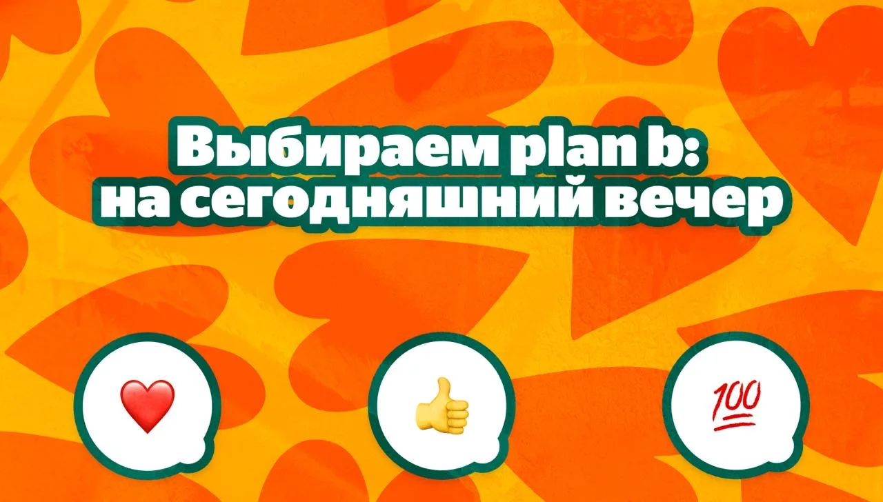 Тогда срочно выбирай plan b: и ставь реакцию, какой вечер тебе по душе!