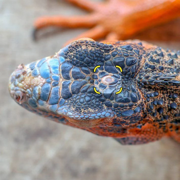 У игуаны 3 глаза. Третий глаз находится сверху на голове и реагирует только на яркость света.