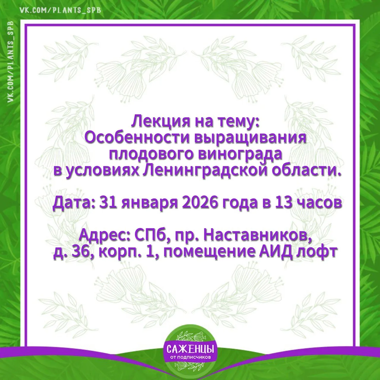 Адрес: СПб, пр. Наставников, д. 36, корп. 1 (помещение АИД лофт)