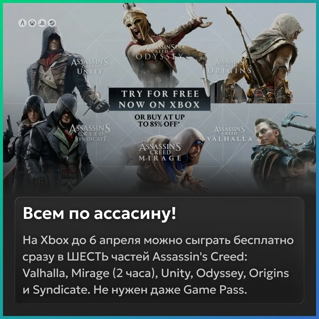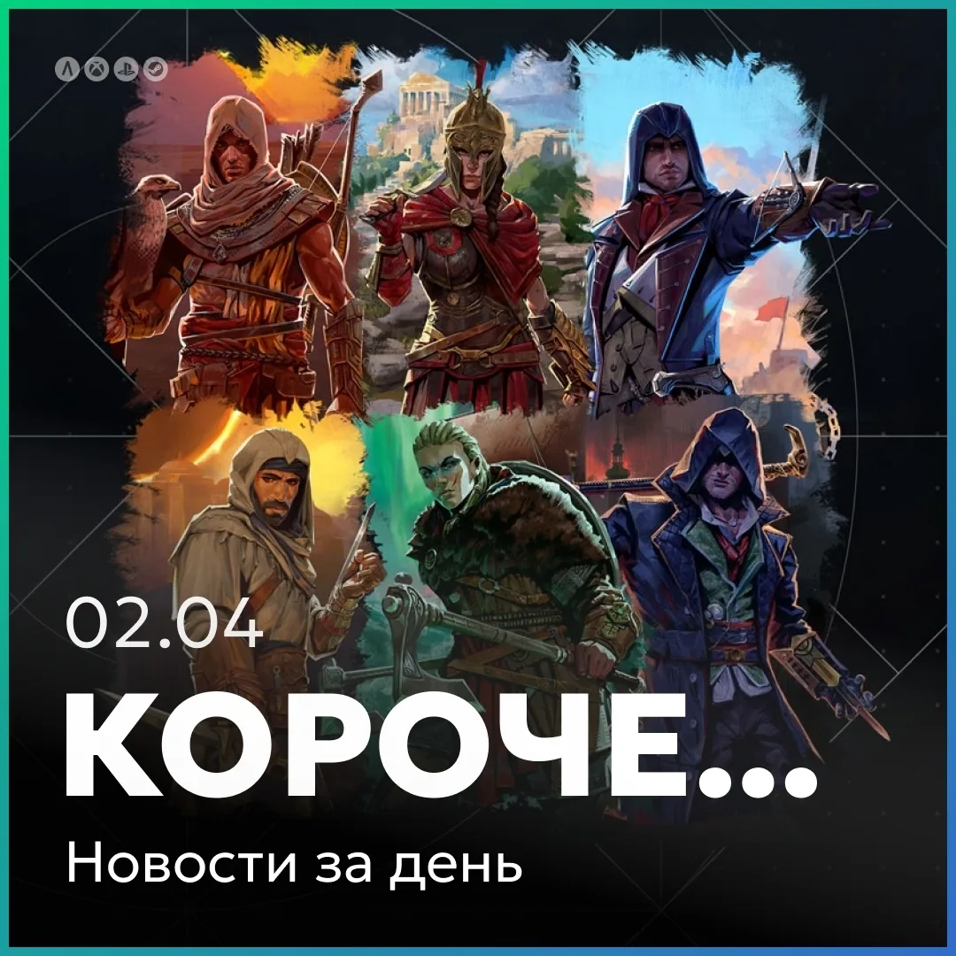 Главные новости дня 02.04 вкратце: бесплатные игры серии Assassin’s Creed.