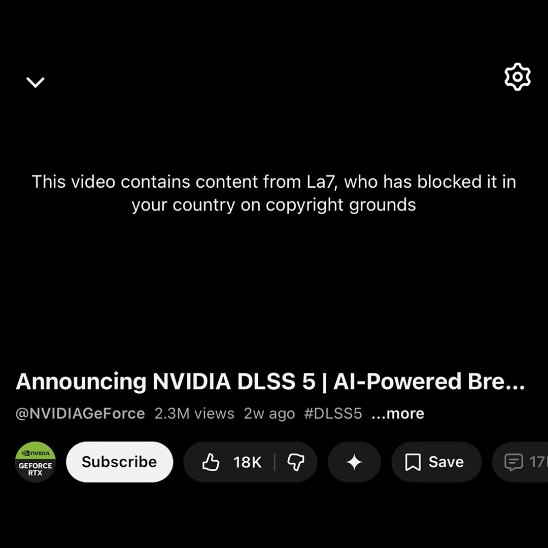 🤣 Официальный трейлер анонса DLSS 5 от NVIDIA был удалён с YouTube из-за жалобы на нарушение авторских прав.