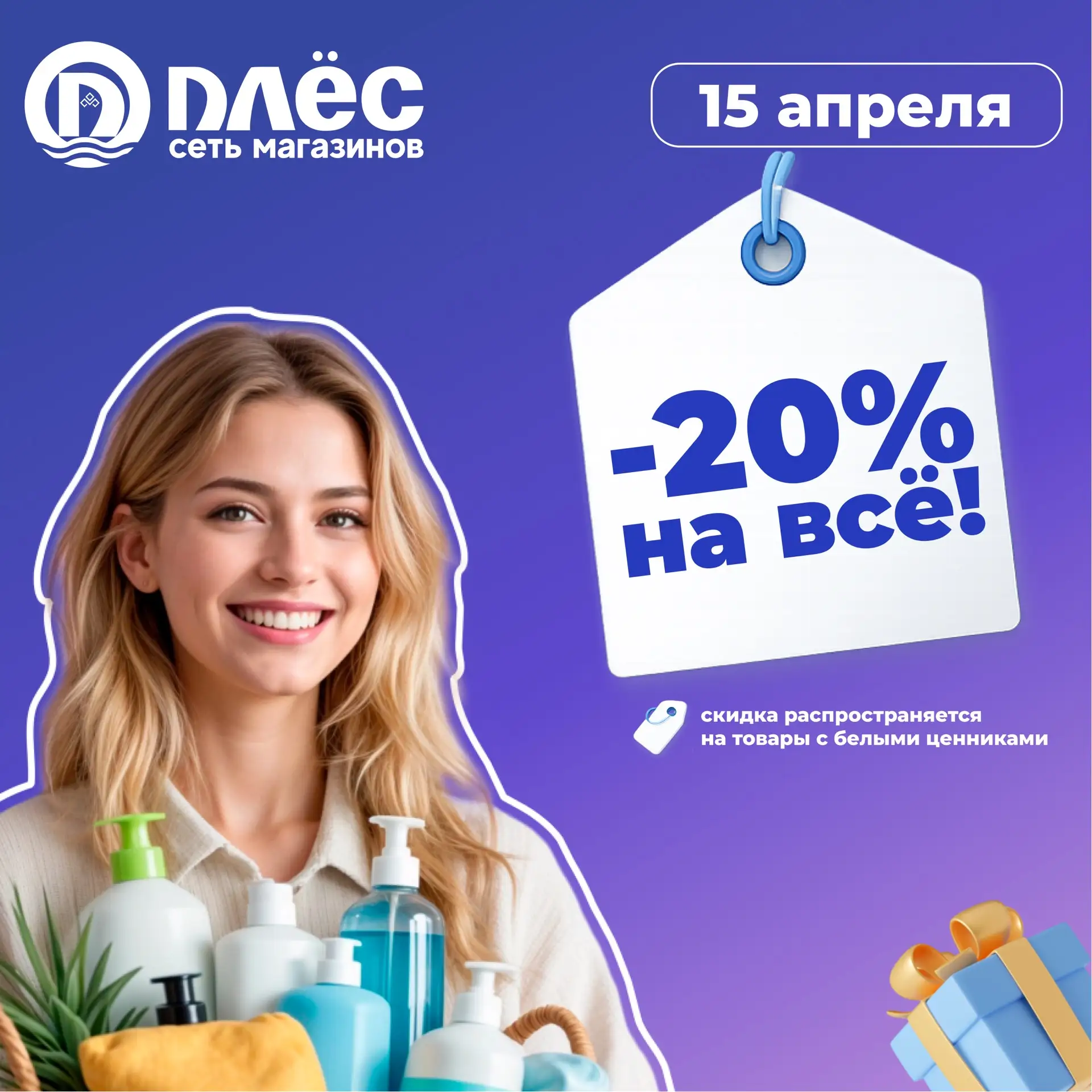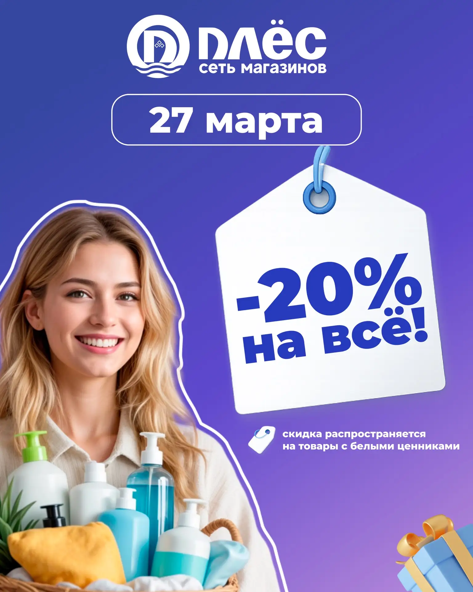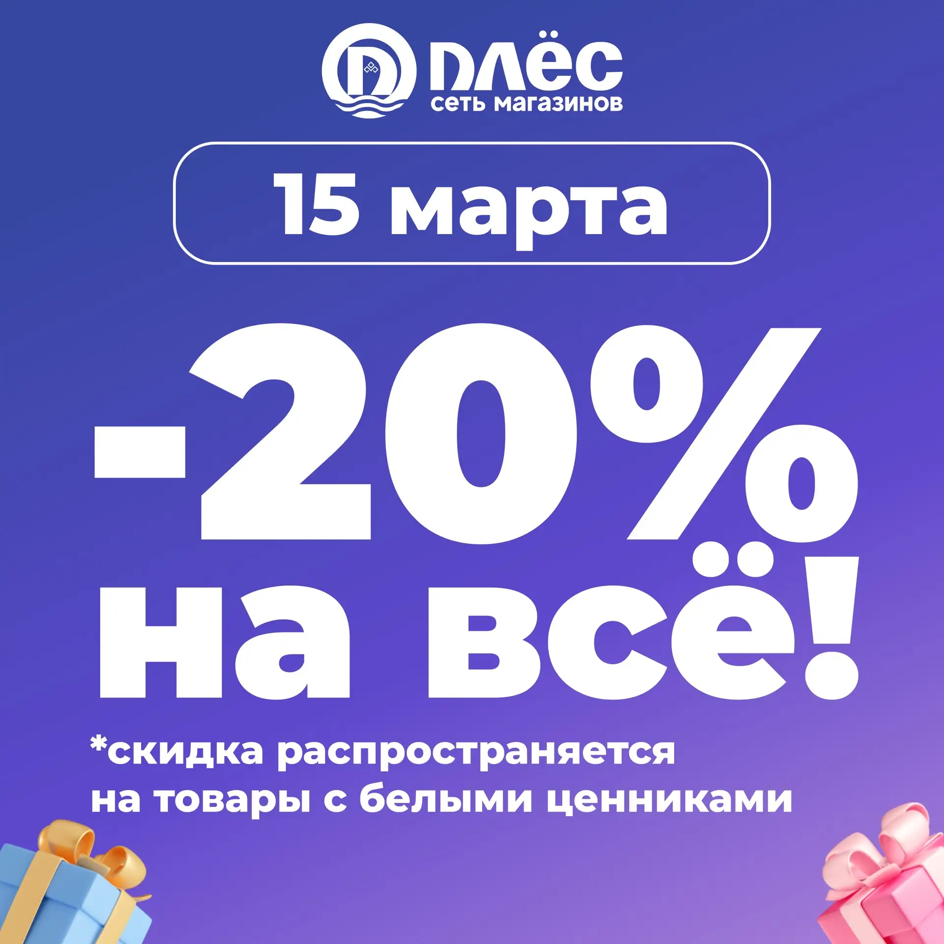 🎉27 марта скидка - 20% на все товары с белыми ценниками во всех магазинах «Плёс»‼️