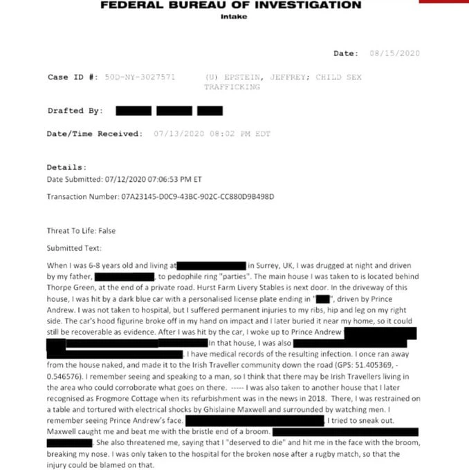 В рассекреченных документах по делу Эпштейна содержатся показания мужчины, который в возрасте 6-8 лет в первой половине 1990-х годов подвергался систематическому насилию в Великобритании. Ребёнка сбил машиной принц Эндрю, а Гислейн Максвелл пытала его электрошокером в той самой резиденции Фрогмор-коттедж, пока "сильные мира сего" наблюдали. Самое интересное: пострадавший утверждает, что закопал улику (фигурку с машины принца) рядом с домом. И называет координаты, где ирландские путешественники могли видеть, как голый ребёнок пытался сбежать от садистов.