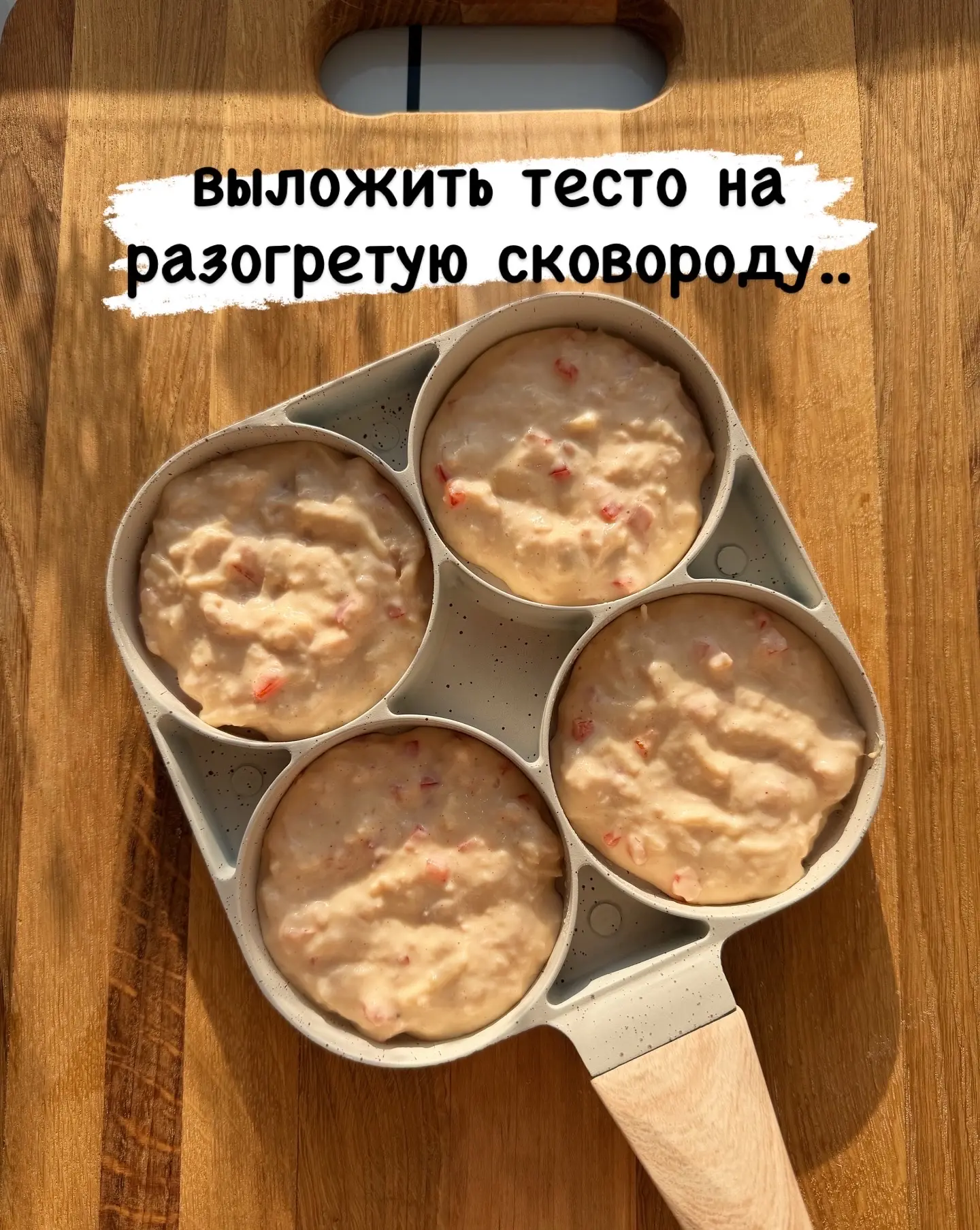 Плиту разогреть на средний огонь. В сковородочку масло, тесто не перемешивать!