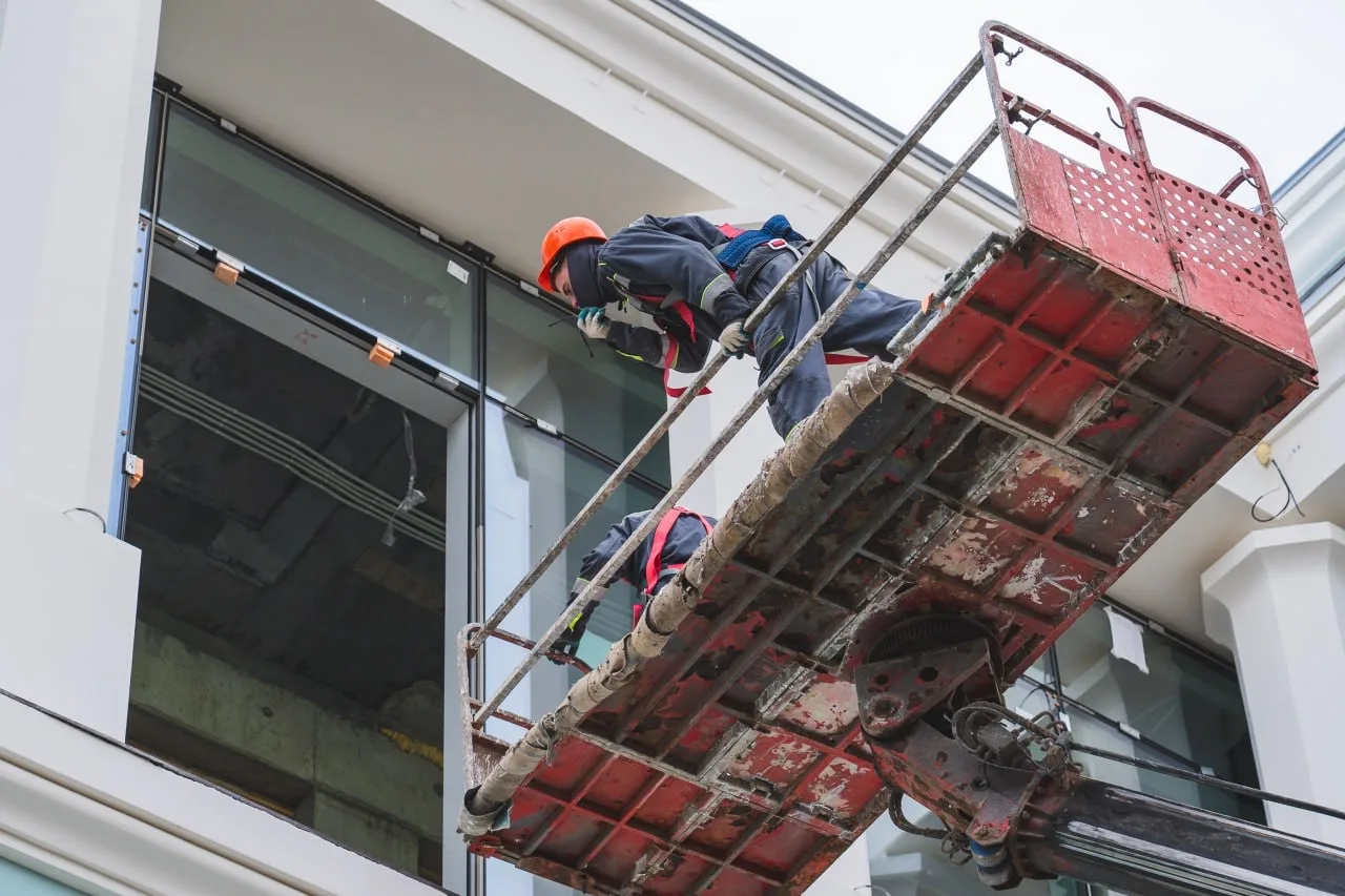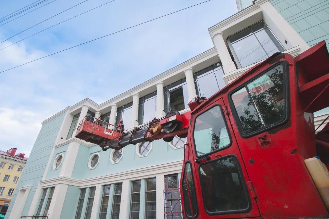 🔹На галереях бывшего кинотеатра «Родина» установили стеклопакеты весом почти полтонны каждый.