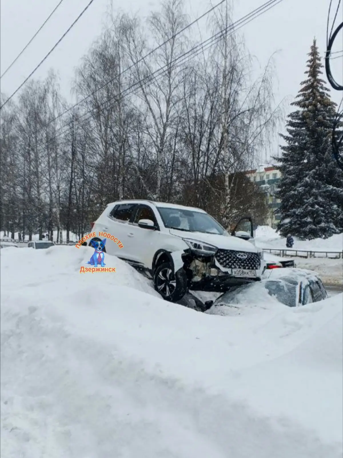 На улице 40 лет Октября, в Кстово, водитель легкового автомобиля не справился с управлением и влетел на сугроб с последующим наездом на крышу припаркованного автомобиля.