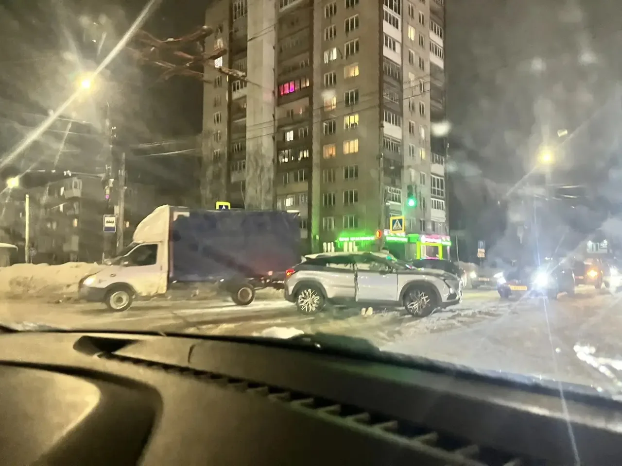 Видео с места утреннего ДТП на перекрёстке проспекта Ленина и улицы Гайдара.