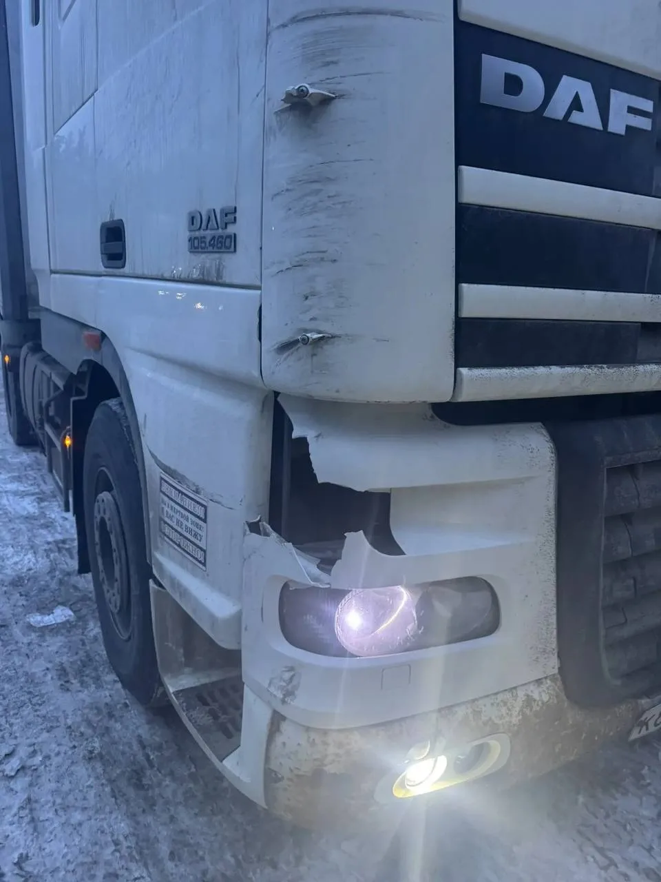 В поселке Решетиха, в районе смотровой площадки, водитель фуры не справился с управлением и влетел в заснеженный отбойник.