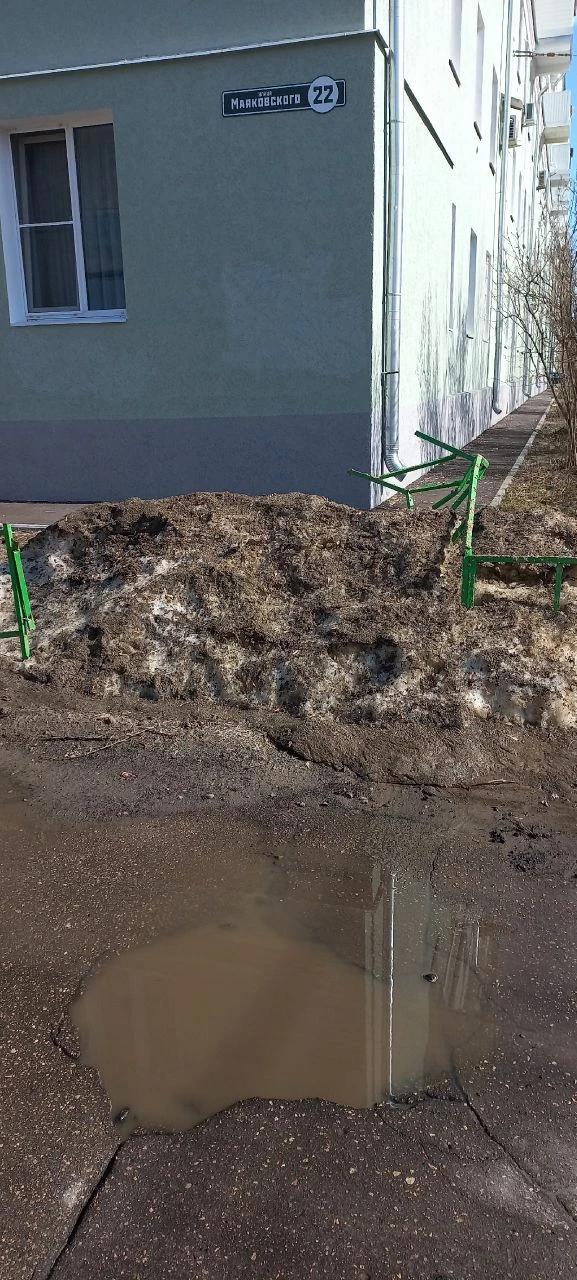 Если бы ещё зимой хорошо до асфальта почистили трактором, сейчас бы такой ситуации не было бы.