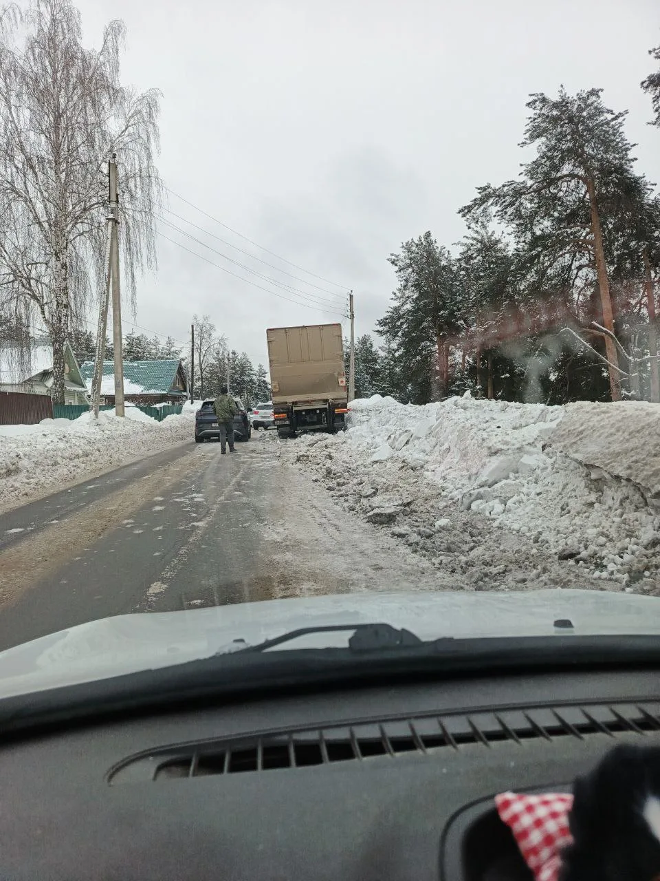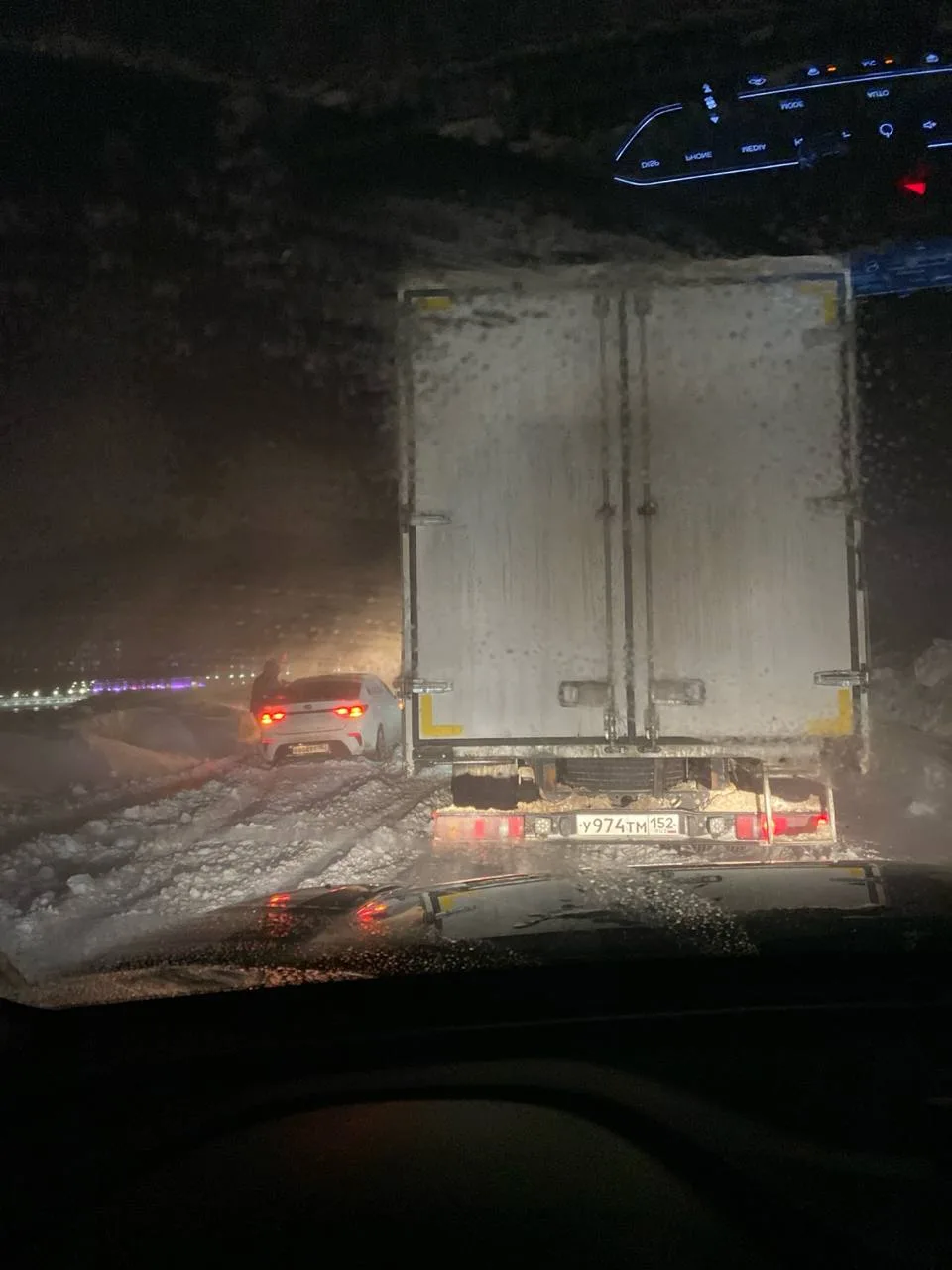 Причина сегодняшней пробки, на трассе М-7, снова фура, которую развернуло на всю проезжую часть, в районе Мячково.