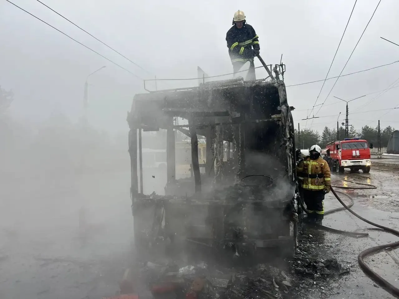Пожар произошел около 09:00 на Нижегородском шоссе д. 5 (троллейбусное депо). Произошло возгорание троллейбуса по всей площади
