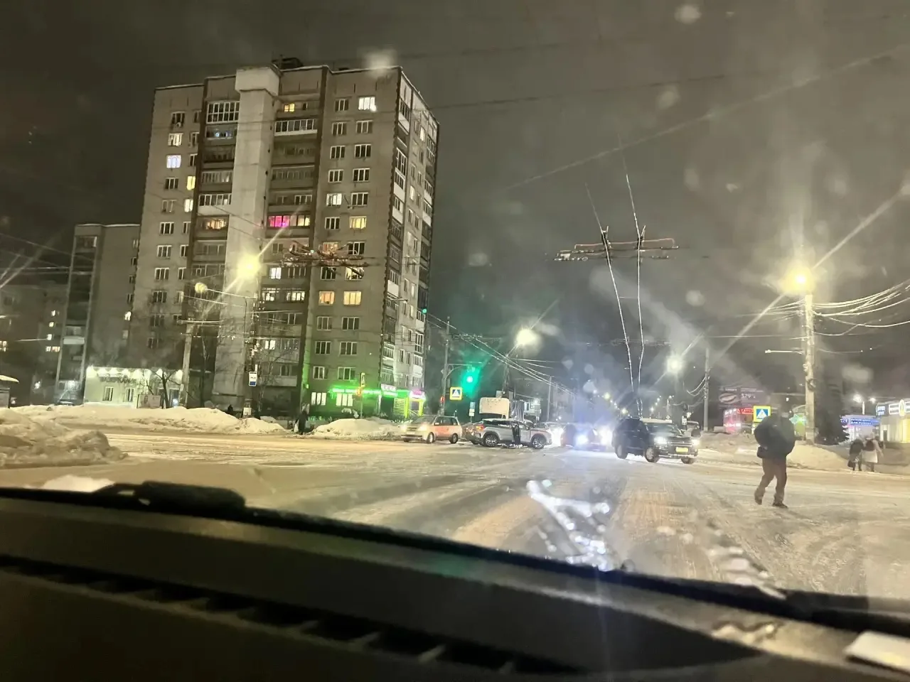 Отважные борцы с аномальным снегопадом засыпали поворот с Ленина на бульвар Мира. Спасибо от души!