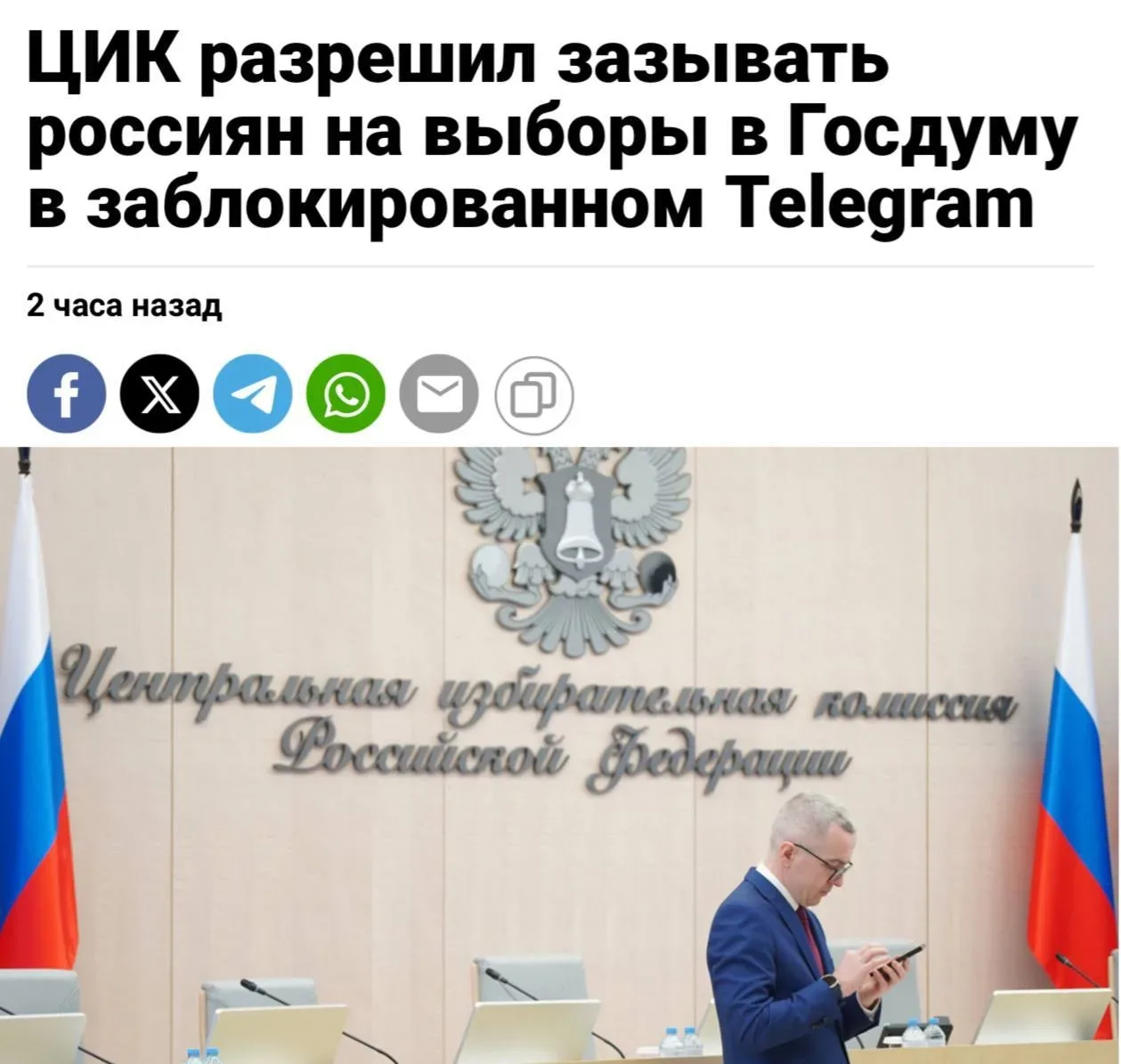 ЦИК официально разрешил агитировать за кандидатов в Госдуму через Telegram. Более того, зазывать россиян на выборы через мессенджер тоже можно. В своём решении комиссия сослалась на закон «О выборах депутатов Госдумы»: кандидаты сами определяют, как, где и в какой форме им агитировать.