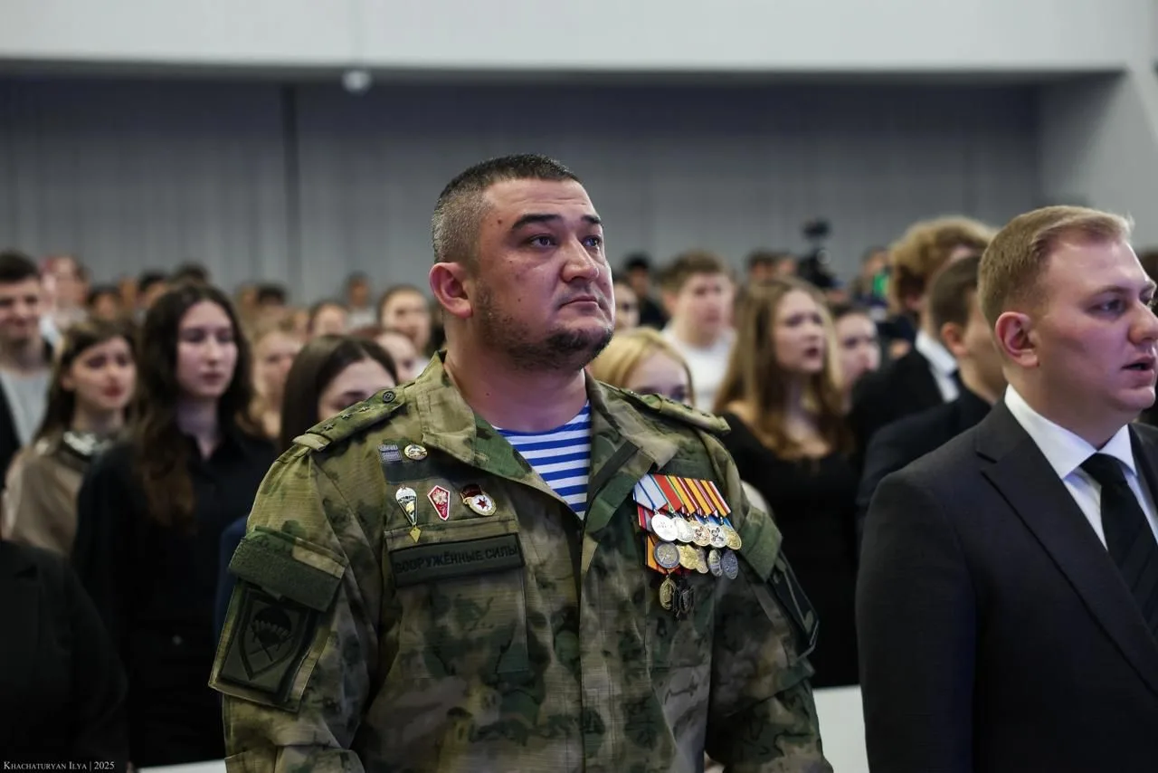 🇷🇺 Ветеран СВО Артур Шихжамалов, который спас 17 сослуживцев, провёл «Урок Мужества» в 24-й гимназии Ставрополя
